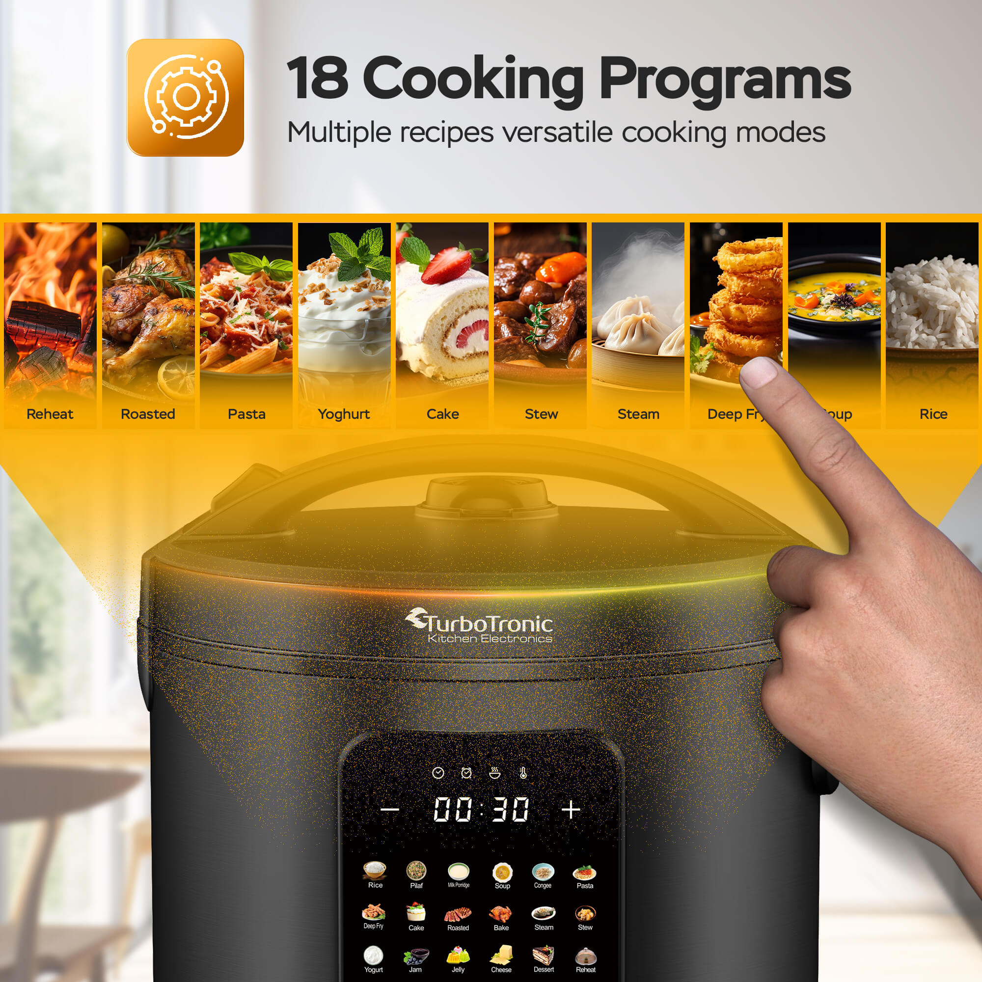 Nasze urządzenie zrobi to za ciebie. Dzięki 18 automatycznym programom możesz cieszyć się różnorodnością posiłków bez konieczności wgłębiania się w tajniki kulinariów. Wystarczy wybrać odpowiedni program, a multicooker zadba o resztę, zapewniając pyszne dania.