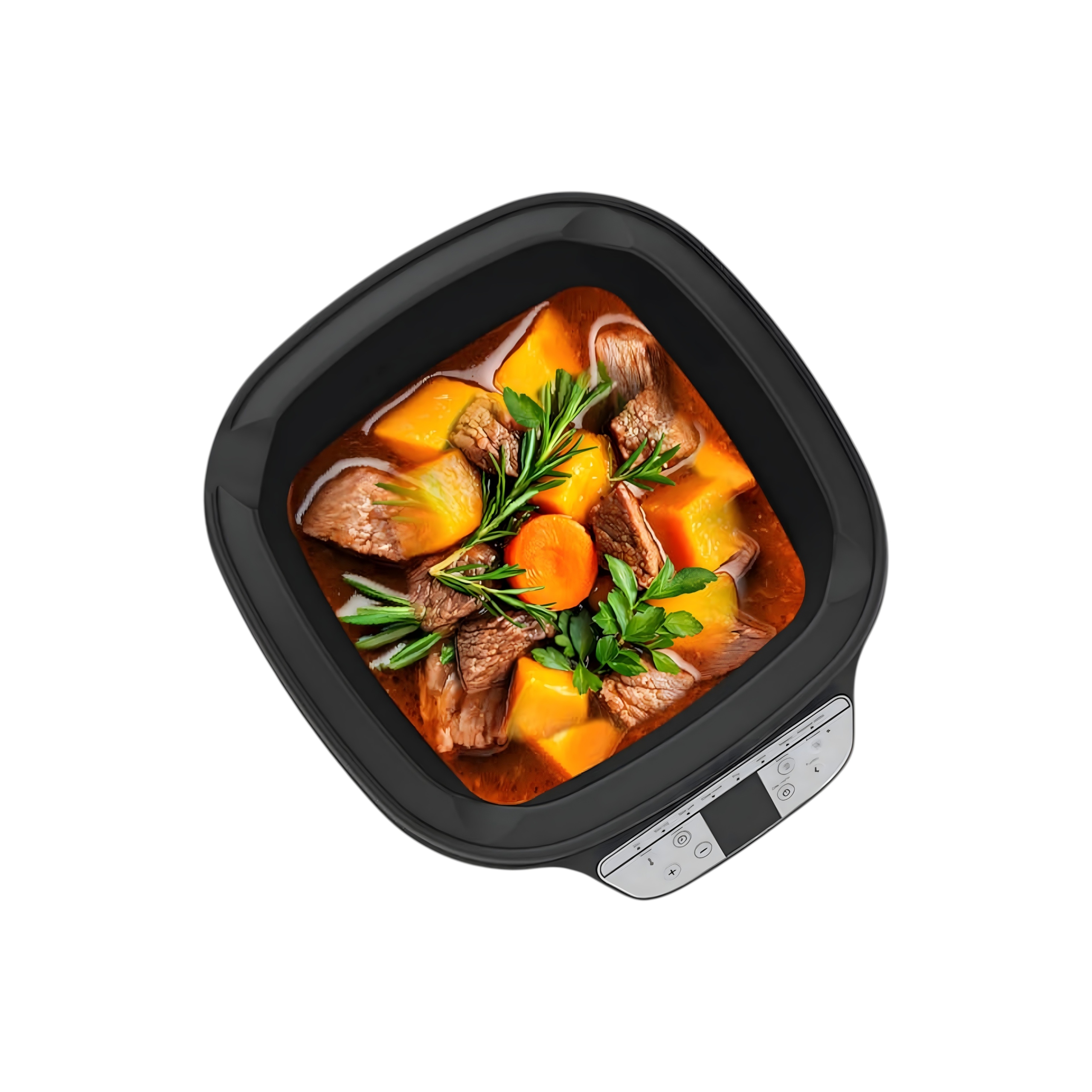 Wyjmowany garnek elektryczny o wymiarach 27,5 x27,5 x 8 cm to serce urządzenia – idealny do gotowania gulaszu, zup, sosów, duszonych warzyw, a nawet ciast. Duża powierzchnia i równomierne rozprowadzanie ciepła pozwalają przygotować większe porcje dla całej rodziny, bez ryzyka przypalenia.