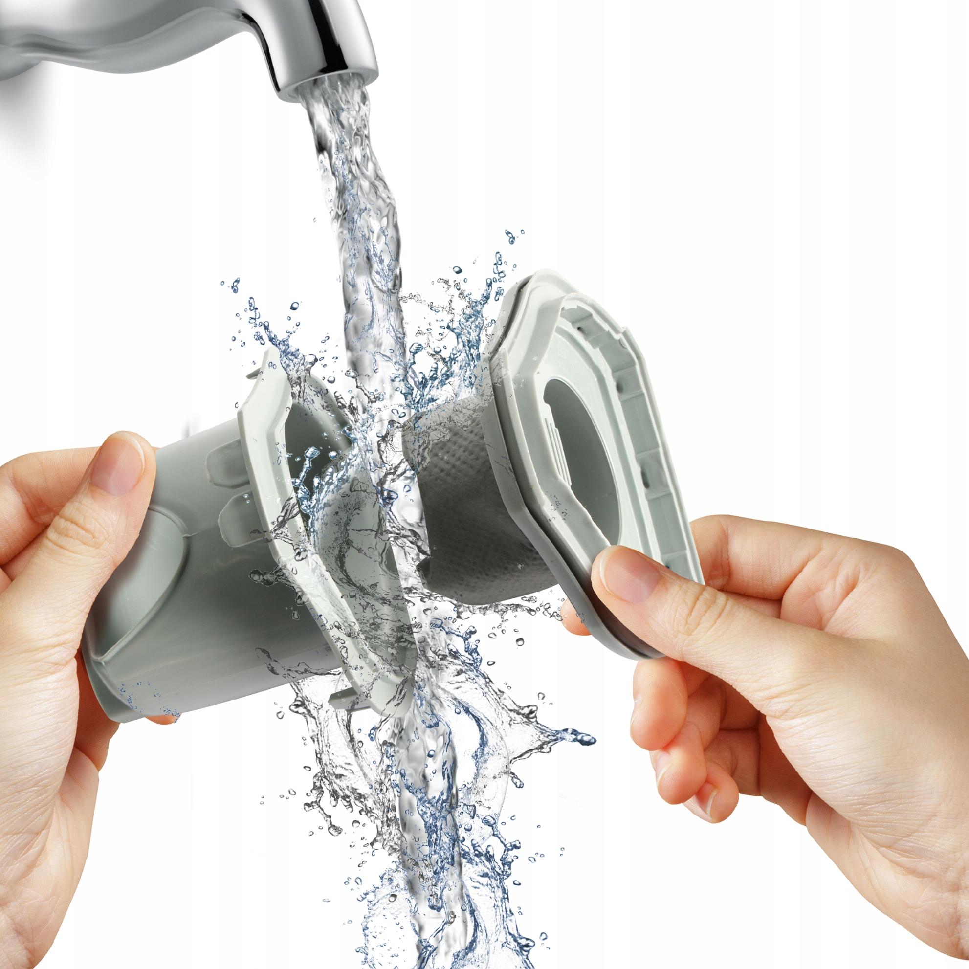 Odkurzacz posiada wytrzymały filtr, który możemy myć pod biezącą wodą.