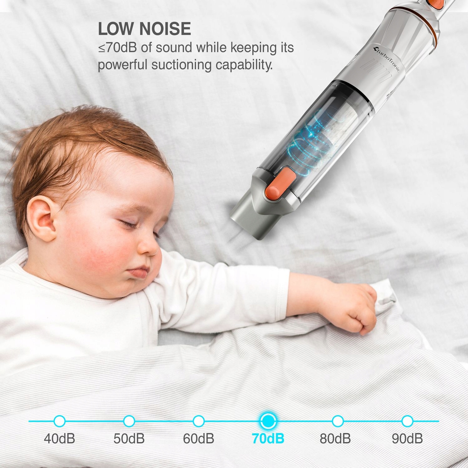 Hałas jaki generuje odkurzacz to tylko 70dB. Jest to bardzo ważne podczas codziennych porządków bo czas na sprzątanie jest zazwyczaj gdy Twoja pociecha smacznie śpi.