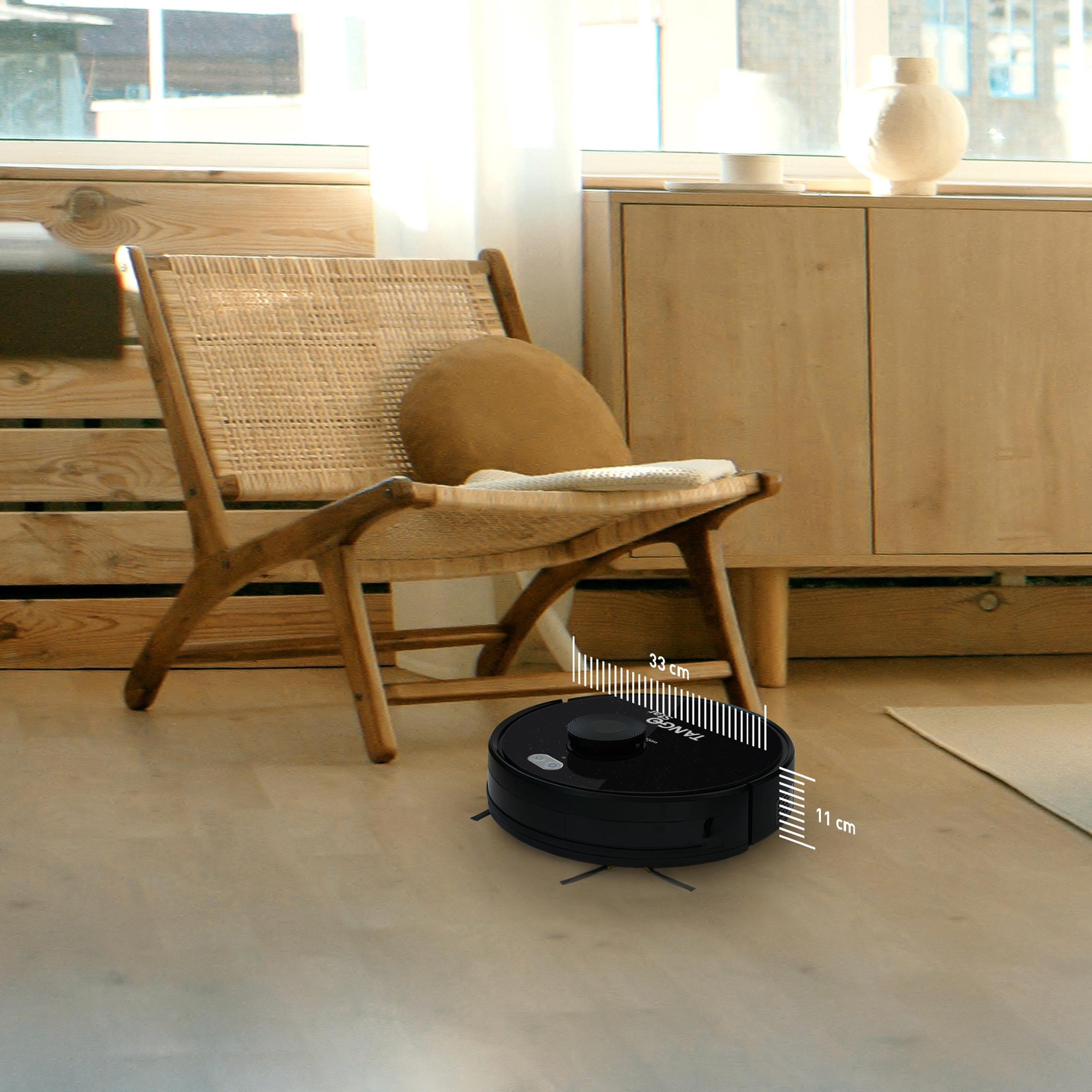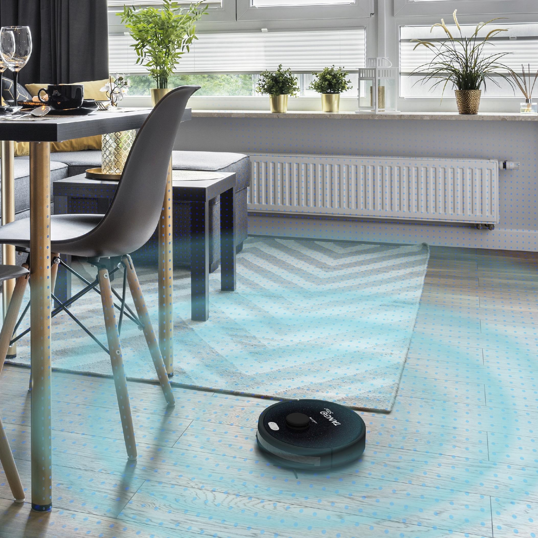 Wbudowane czujniki odległości pozwalają na dokładną ocenę zanieczyszczeń w bliskim kontakcie z meblami, dzięki temu zapewnia dokładność sprzątania aż do 99%.