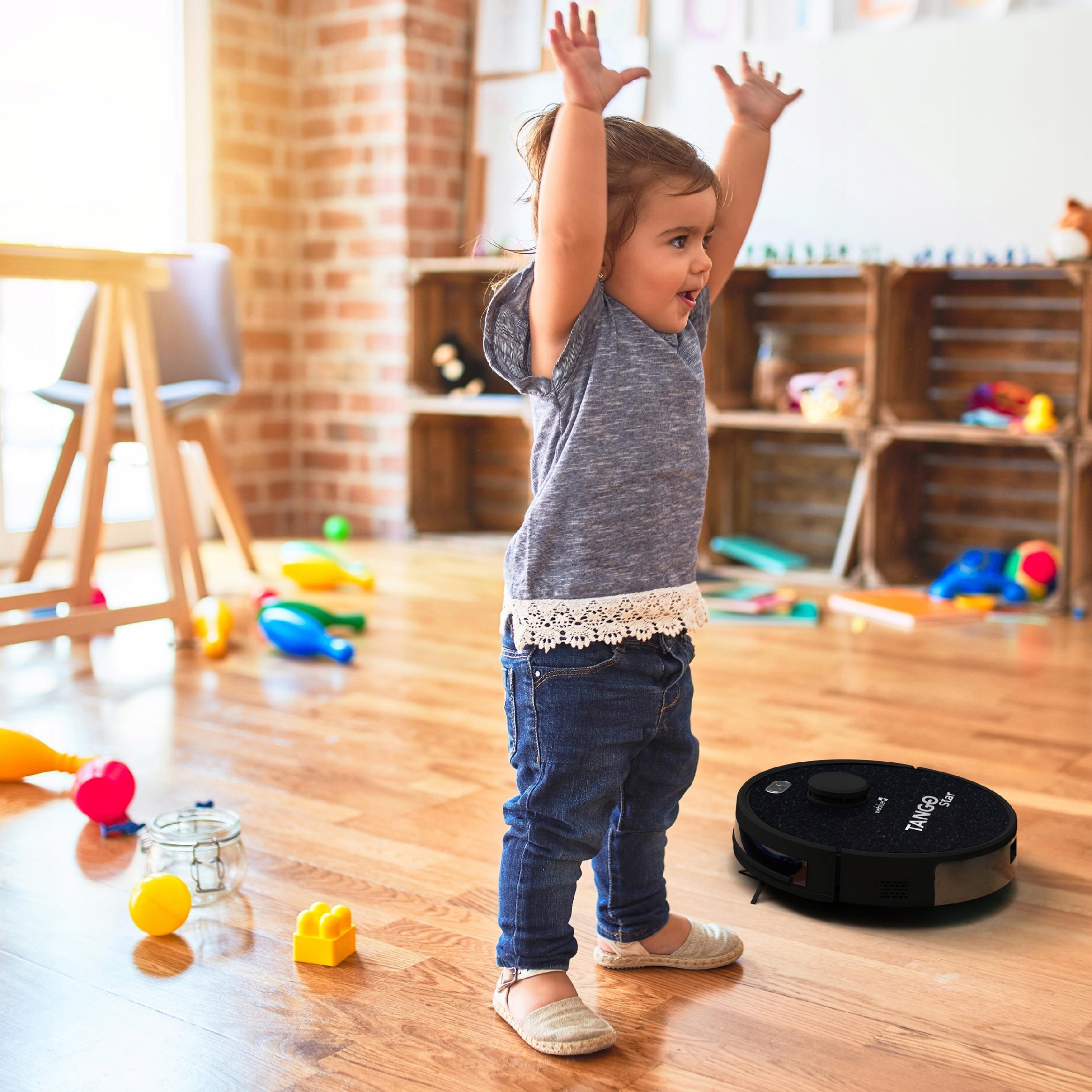 Robot aktywnie skanuje pomieszczenie tworząc mapę w aplikacji mobilnej, zaznaczając każdy przedmiot, dzięki temu robot sprząta dom szybciej i dokładniej.