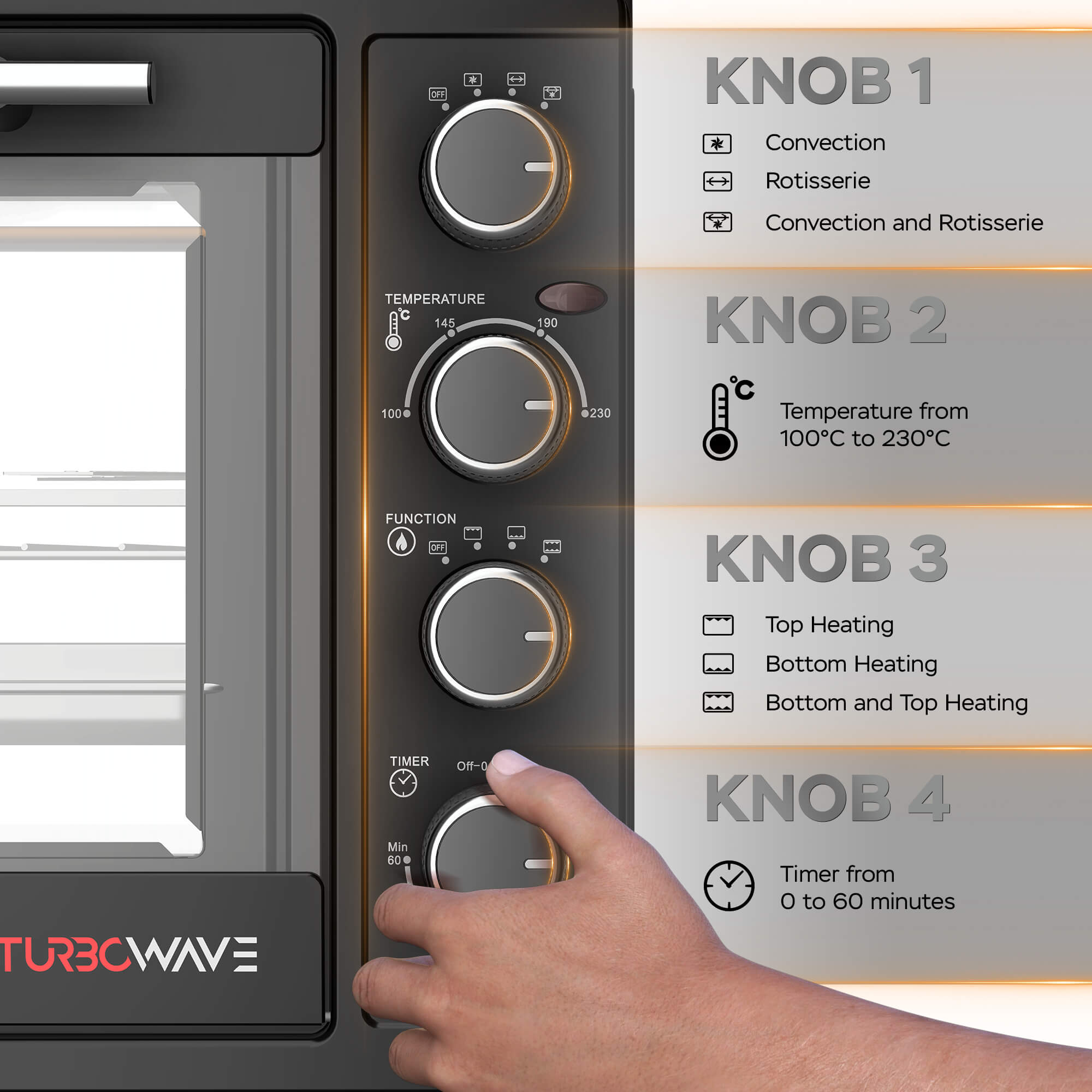 Regulacja temperatury w zakresie 100-230°C pozwala na dostosowanie do własnych potrzeb, a timer do 60 min umożliwia kontrolowanie procesu pieczenia.