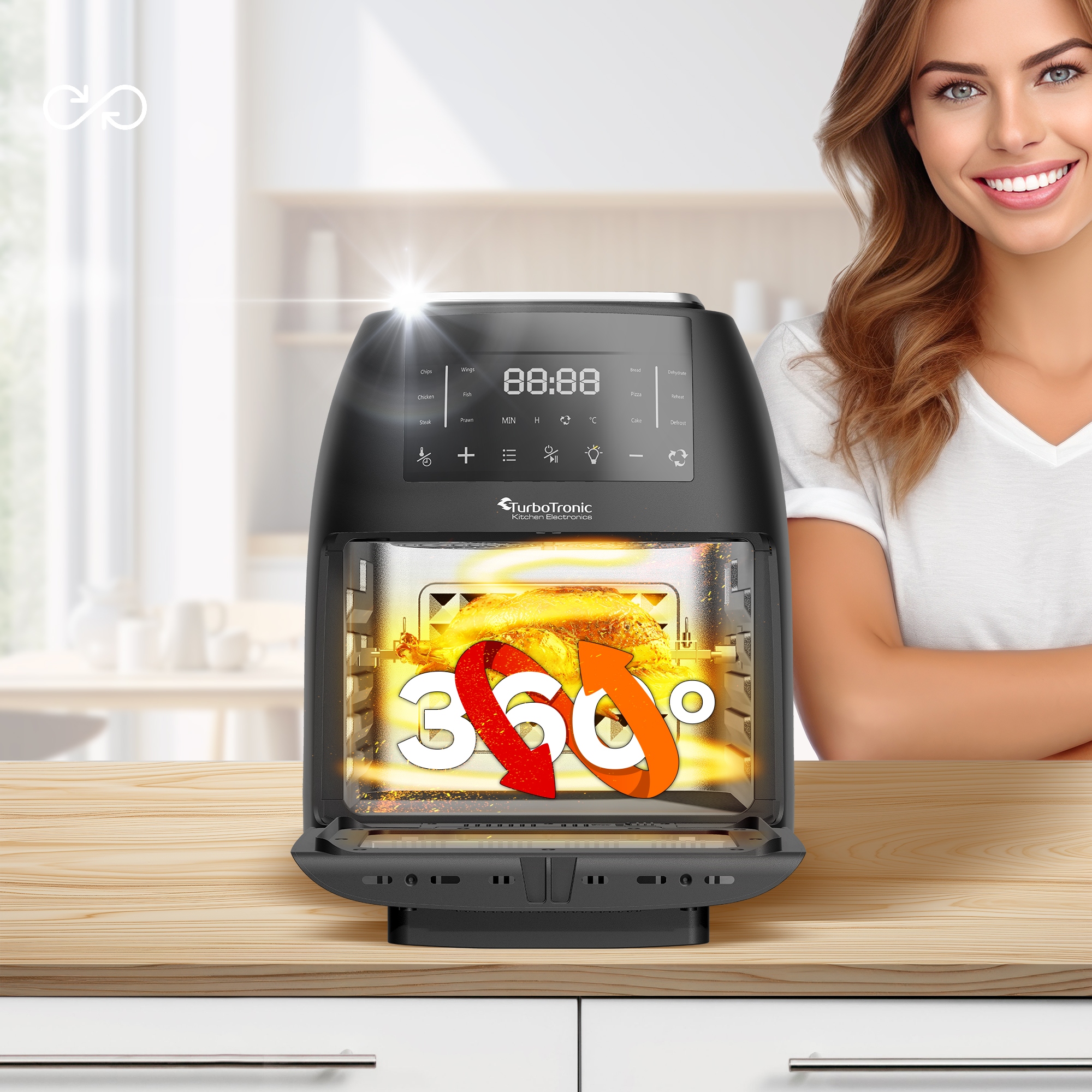 Obieg gorącego powietrza 360° sprawia, że Twoje potrawy są równomiernie przypieczone, chrupiące z zewnątrz i soczyste w środku – bez tłuszczu.