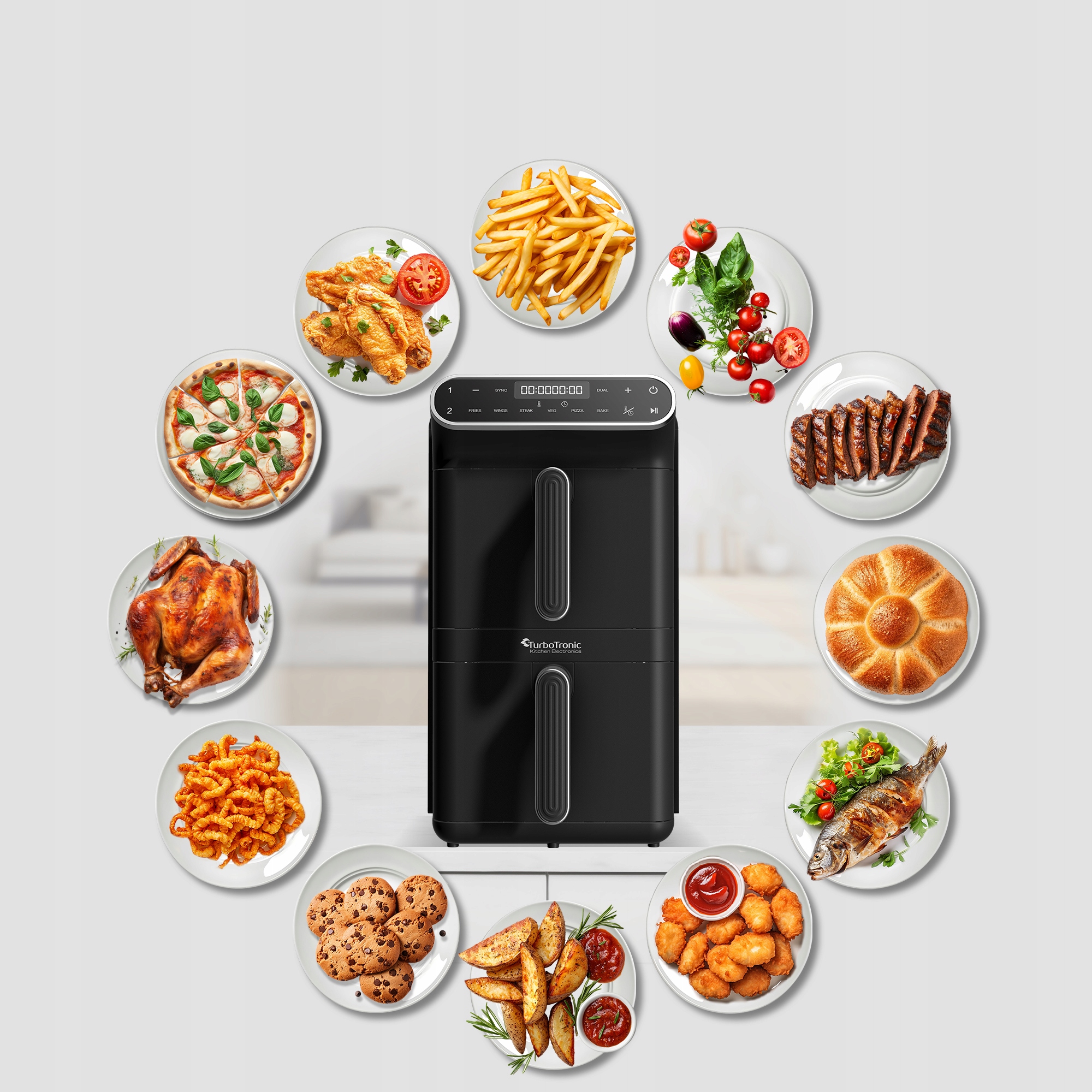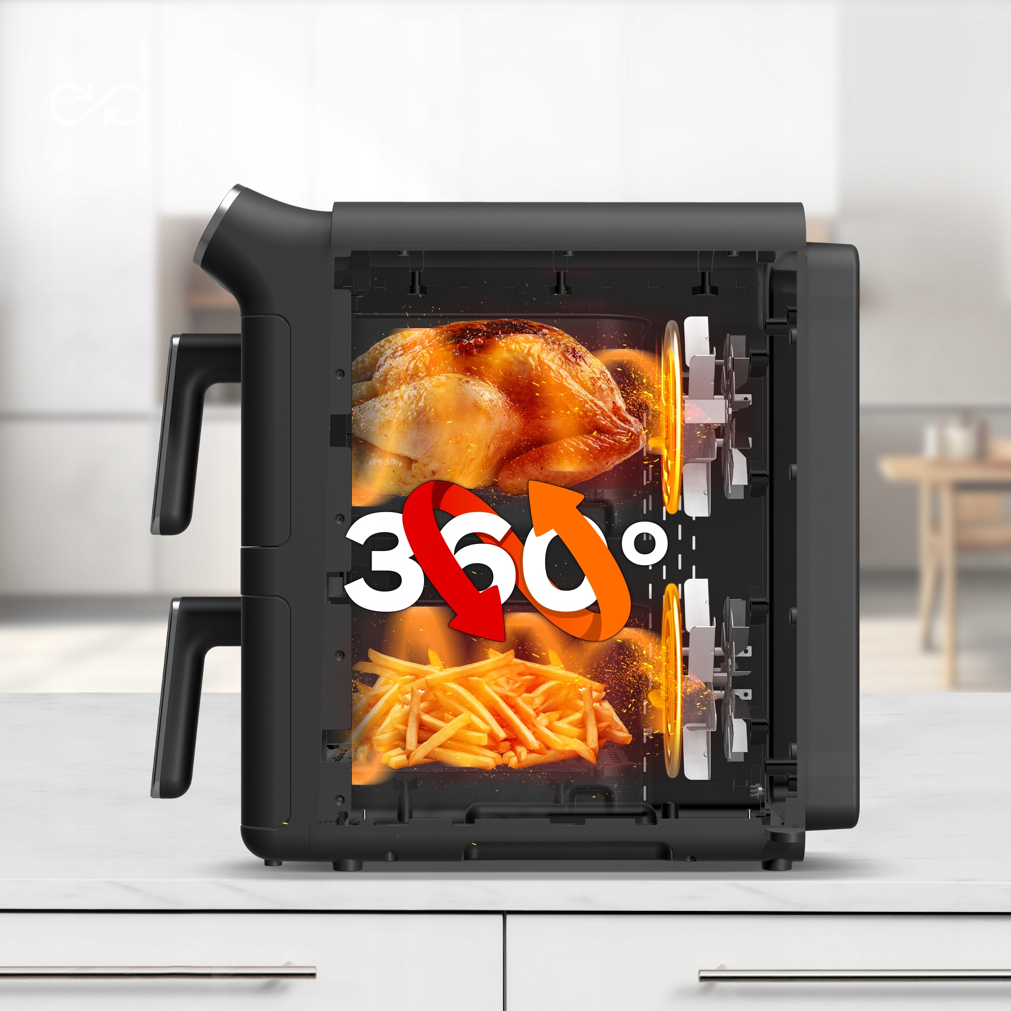 Oto innowacyjna frytownica beztłuszczowa, która zmienia zasady gry. Aż 11 litrów pojemności, dwa niezależne kosze i nowoczesny design, który zmieści się w każdej kuchni. Smaż, piecz i grilluj – szybciej, zdrowiej i bez zbędnego tłuszczu.