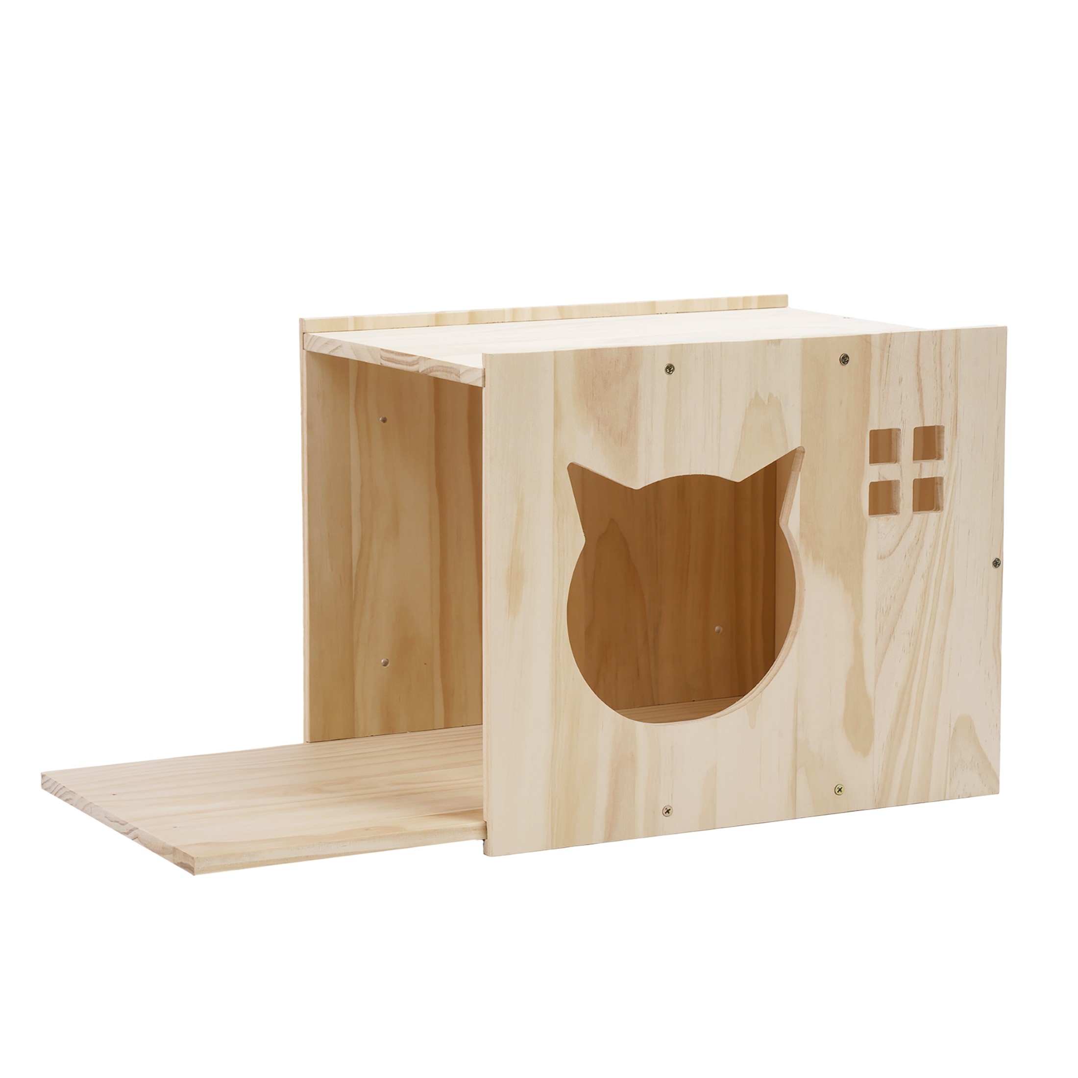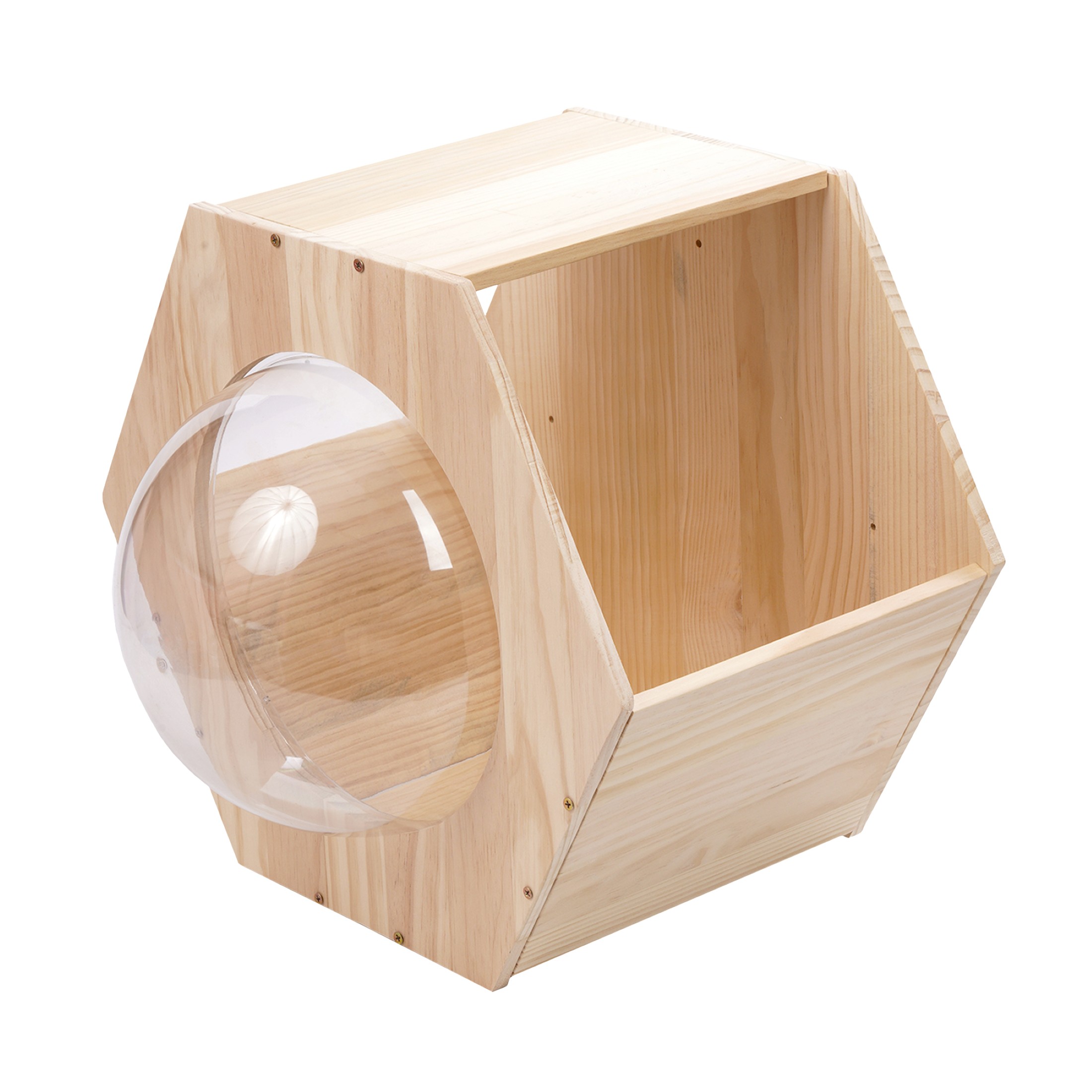- Budka z misą zamiast okna – innowacyjne rozwiązanie, które pozwala kotu leżeć i wyglądać przez przezroczystą powierzchnię, zapewniając mu poczucie bezpieczeństwa i kontakt z otoczeniem.