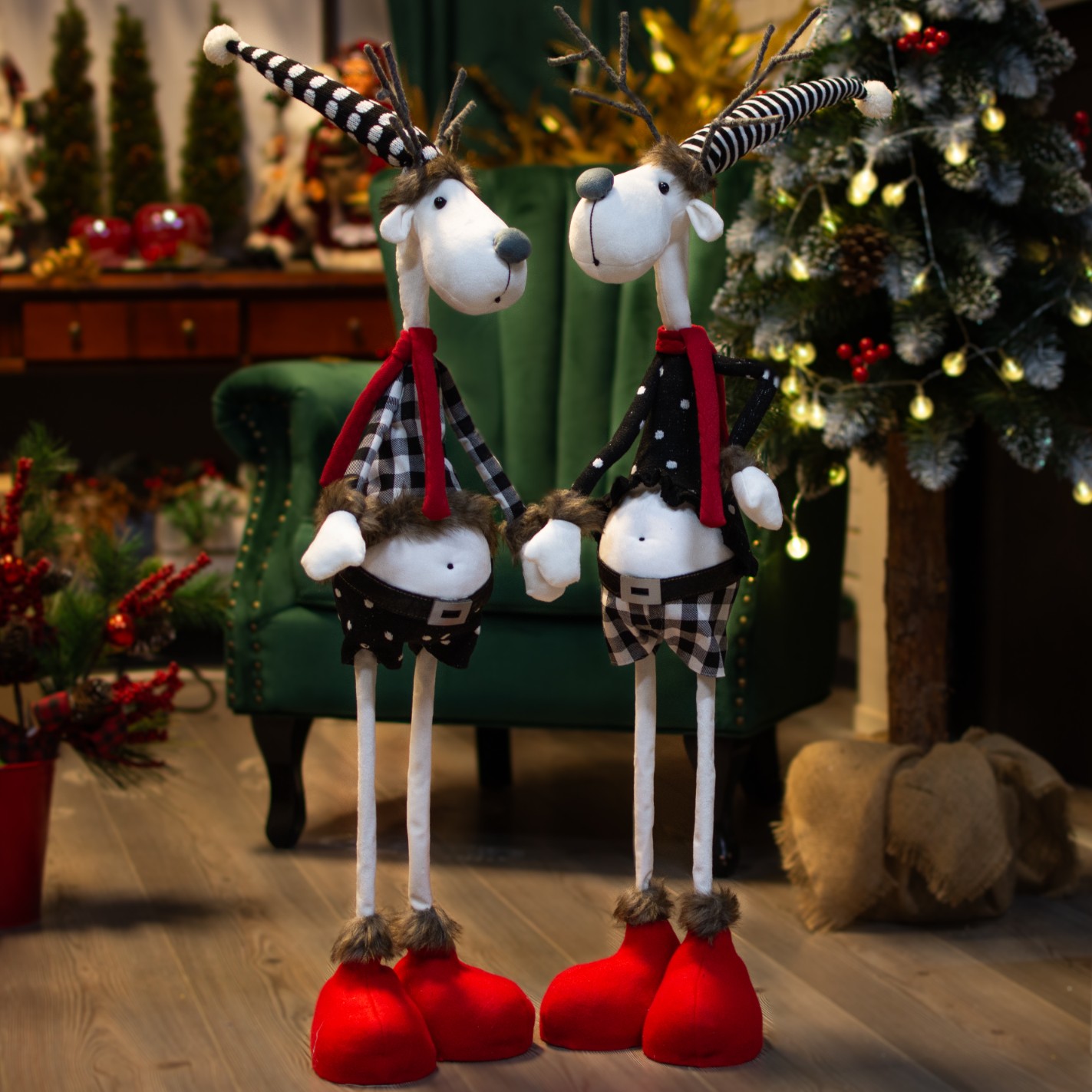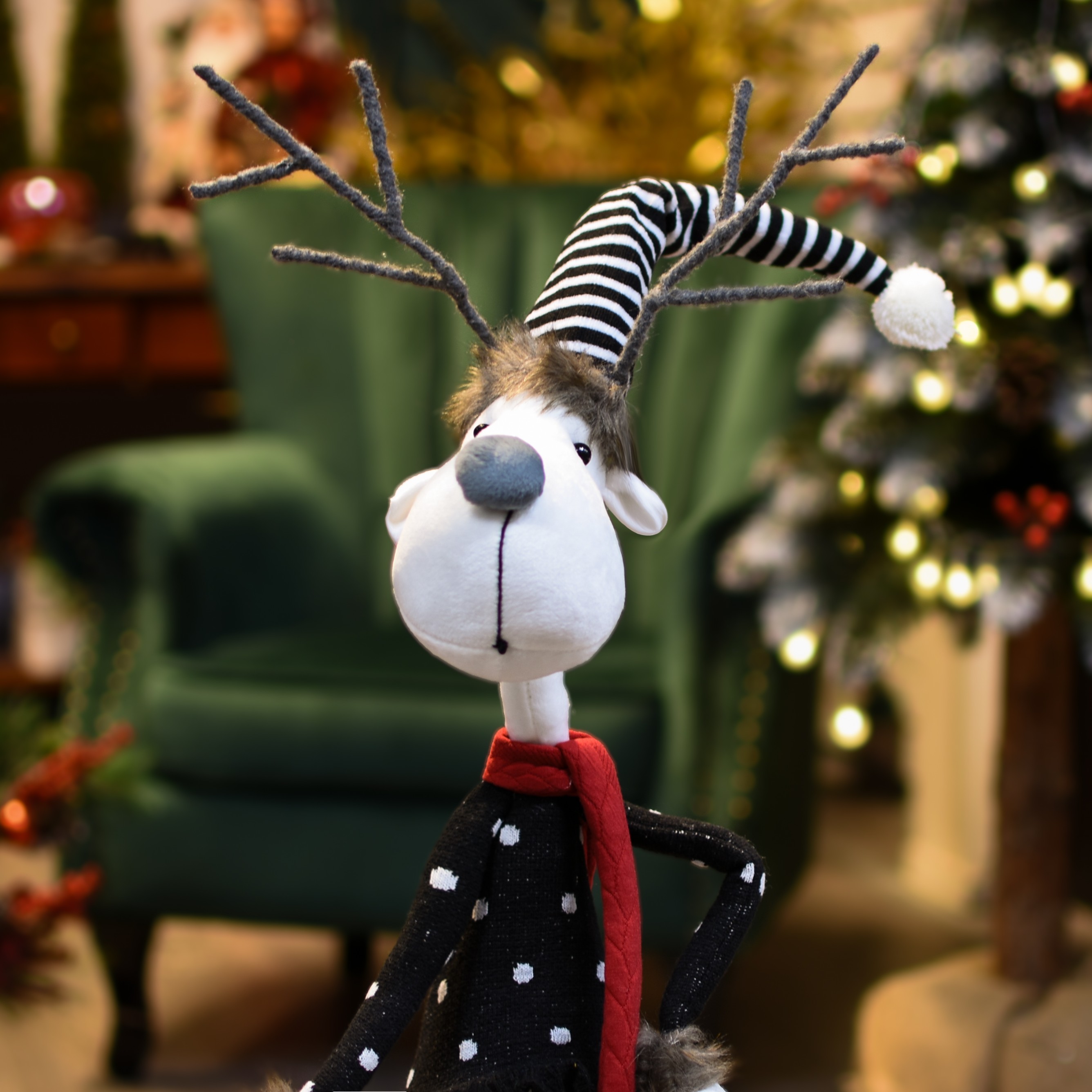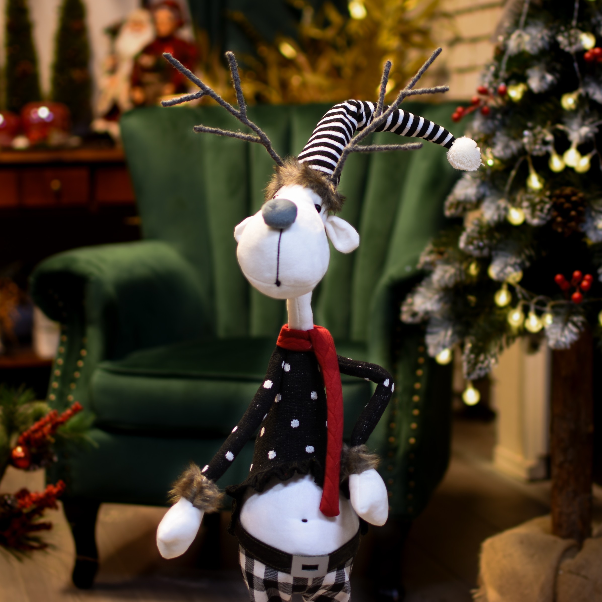 ❄️ Z uroczą czapką, miękką czapeczką, pięknymi rogami i radosną aurą, ten świąteczny skrzat o wysokości 93 cm to nie tylko dekoracja – to prawdziwy strażnik świątecznego klimatu!