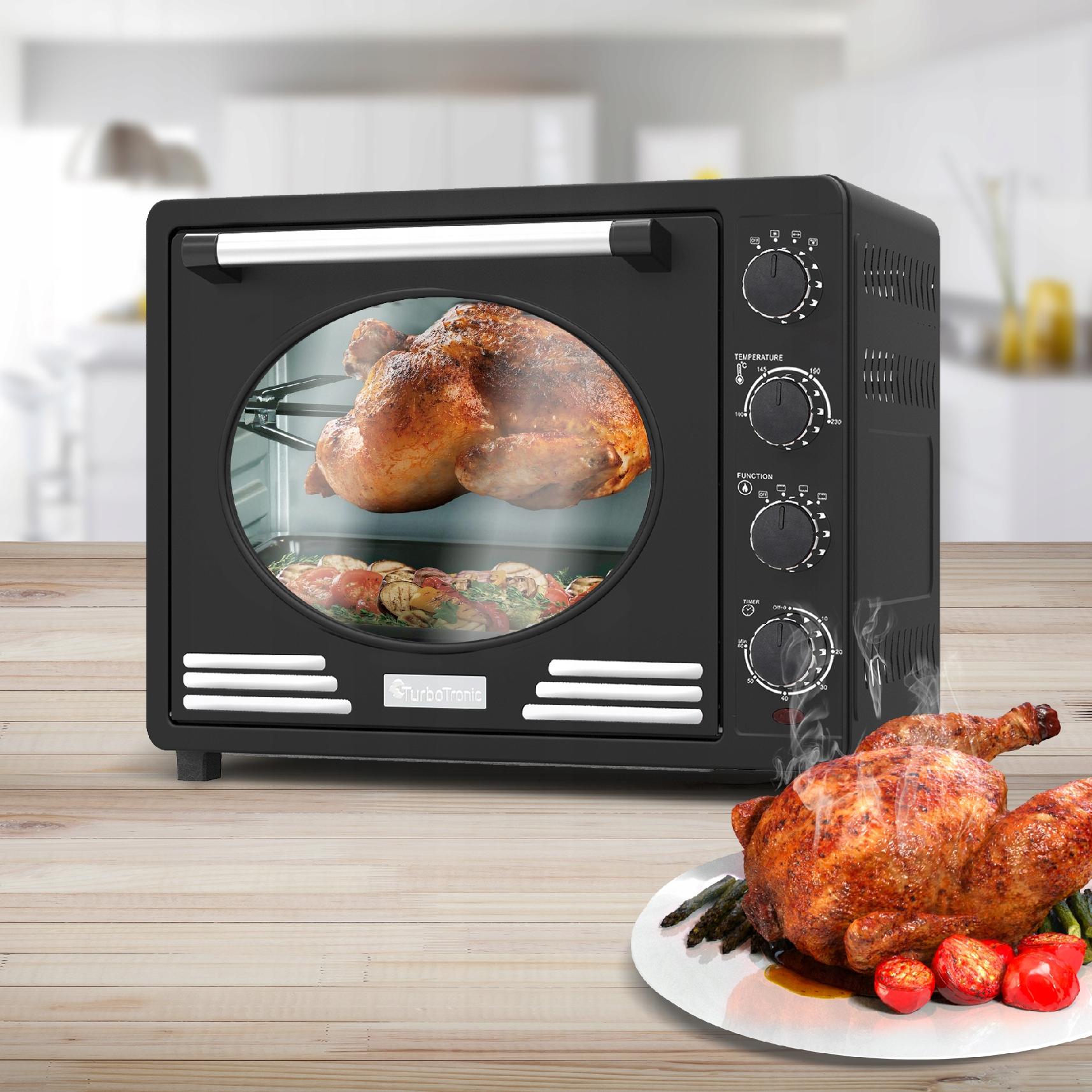 Urządzenie wyposażone jest w rożen oraz funkcję termoobiegu, które zapewniają równomierne rozprowadzanie ciepła wewnątrz komory piekarnika.