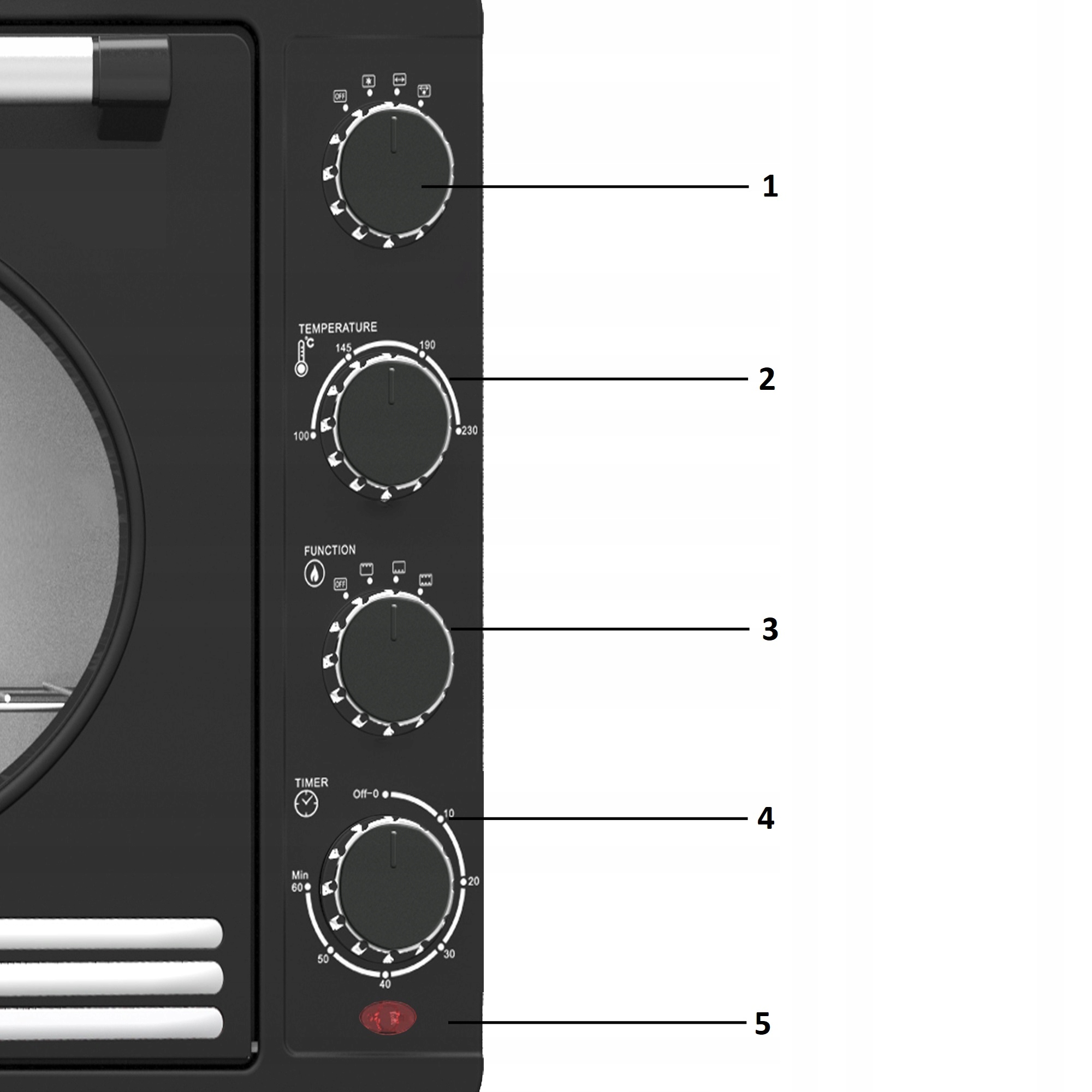 Regulacja temperatury w zakresie 100-230°C pozwala na dostosowanie do własnych potrzeb, a timer do 60 min umożliwia kontrolowanie procesu pieczenia.