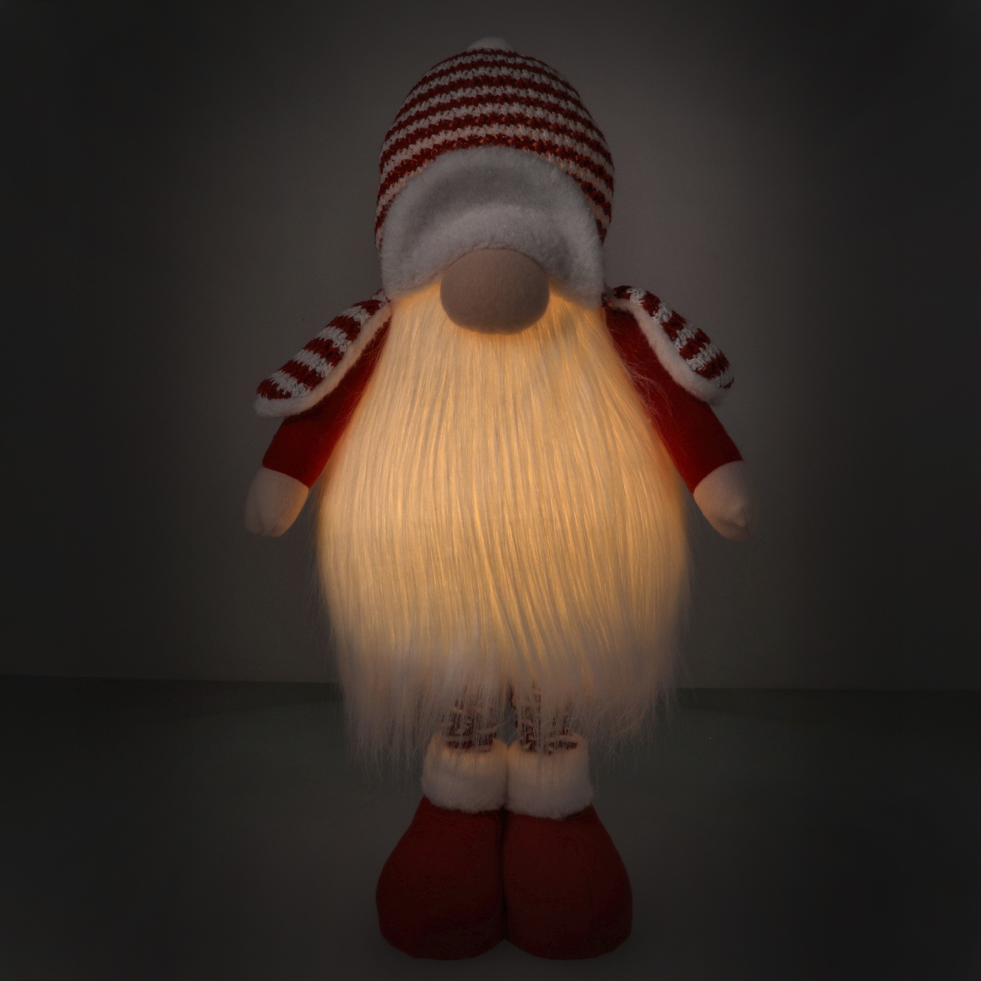 ❄️ Z uroczą czapką naciągniętą aż po nos, miękką brodą, długimi nogami i świecącym brzuszkiem ten świąteczny skrzat o wysokości 87 cm to nie tylko dekoracja – to prawdziwy strażnik świątecznego klimatu!