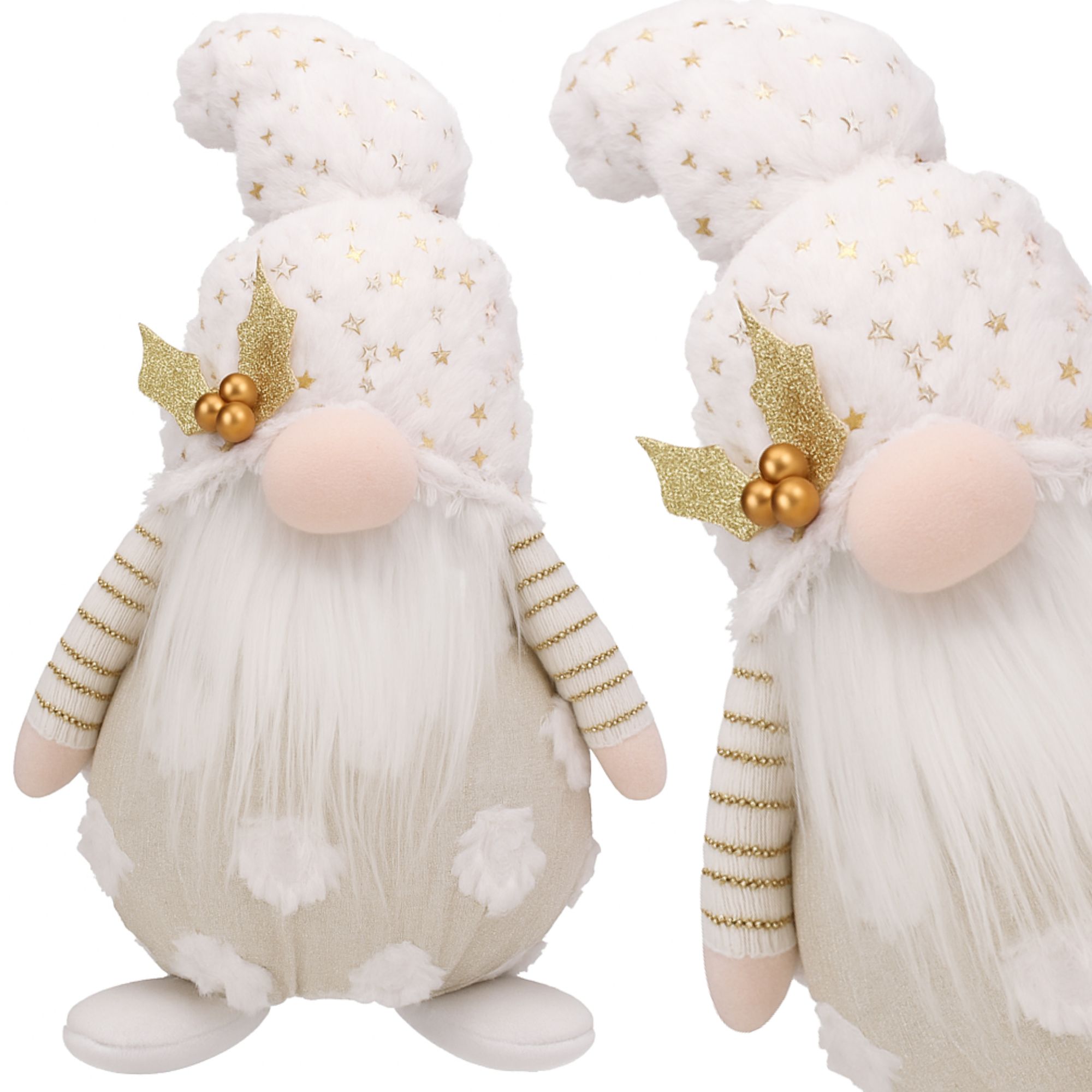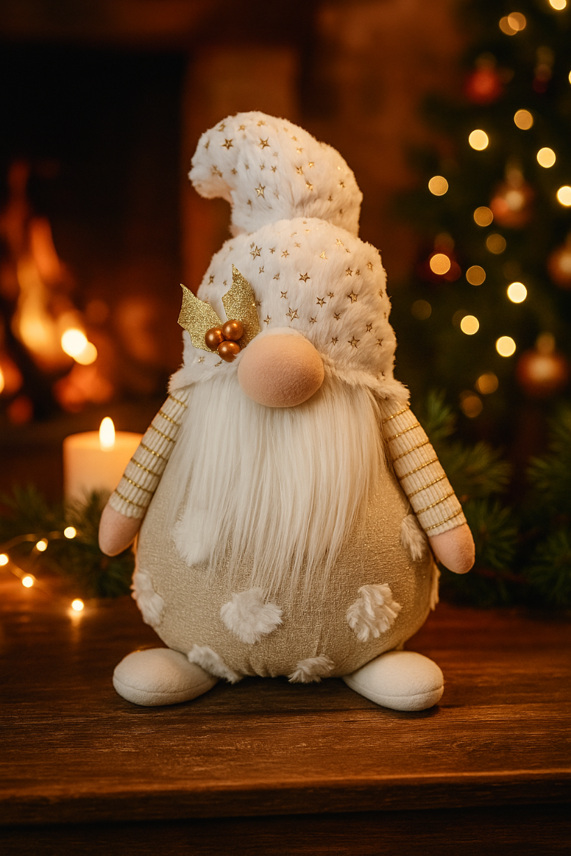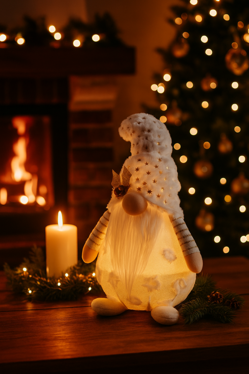 ❄️ Z uroczą czapką naciągniętą aż po nos, miękką brodą i świecącym brzuszkiem, ten świąteczny skrzat o wysokości 45 cm to nie tylko dekoracja – to prawdziwy strażnik świątecznego klimatu!
