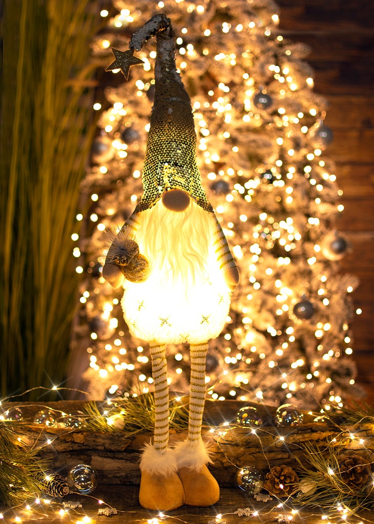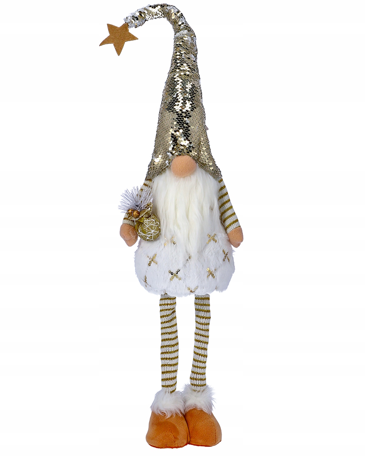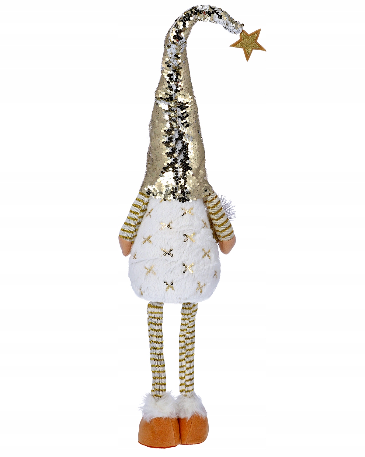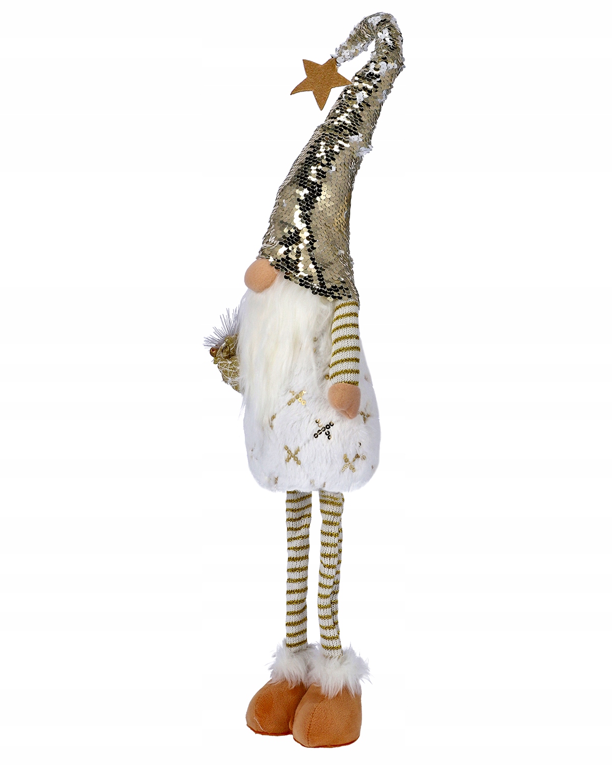 ❄️ Z uroczą czapką naciągniętą aż po nos, miękką brodą i długimi nogami, ten świąteczny skrzat o wysokości 78 cm to nie tylko dekoracja – to prawdziwy strażnik świątecznego klimatu!