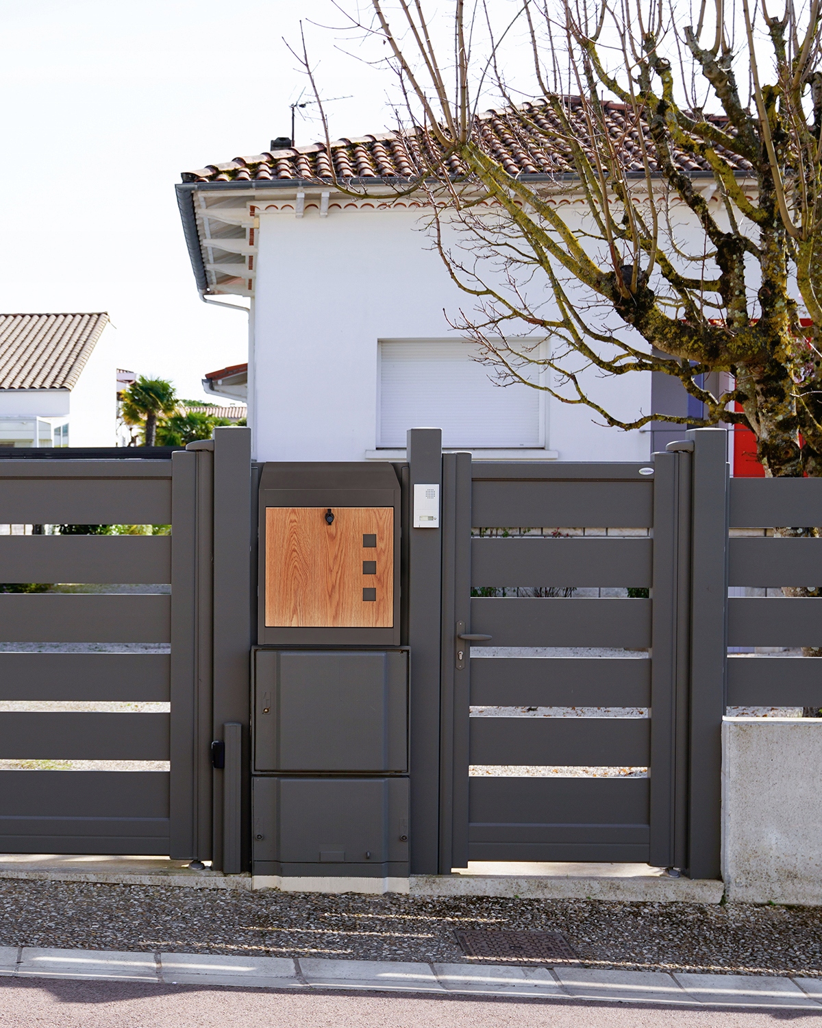 - Elegancka metalowa skrzynka z okienkami o nowoczesnym designie, zaprojektowana z myślą o wygodnym użytkowaniu - pozwala na wrzucanie małych paczek kurierskich.