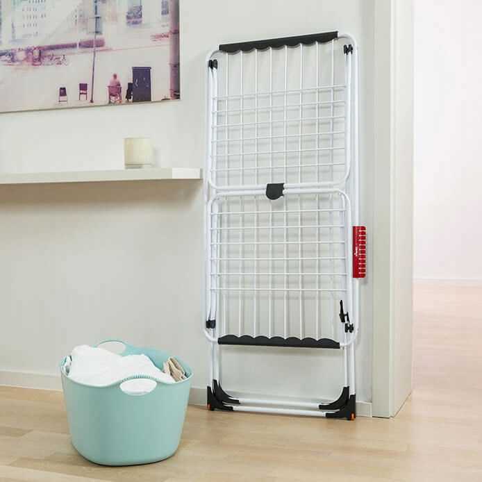 - Po złożeniu stojak do suszenia Extra można schować, aby zaoszczędzić miejsce.