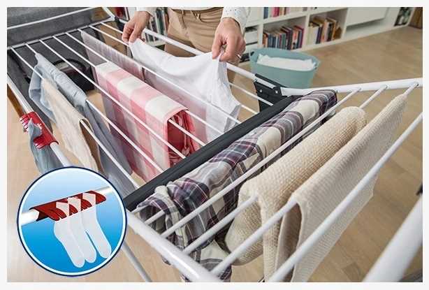 - Wyposażona w kółka ułatwiające przesuwanie suszarki gdy jest rozłożona
