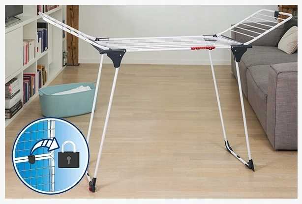 Co jeszcze sprawia, że produkt Vileda jest wart uwagi? Vileda King posiada praktyczny wieszak na drobną bieliznę, dodatkową blokadę skrzydeł oraz zabezpieczenie przed przypadkowym złożeniem. Dzięki temu optymalnie zagospodarujesz dostępną powierzchnię suszenia oraz zapobiegniesz przypadkowemu przewróceniu się konstrukcji.