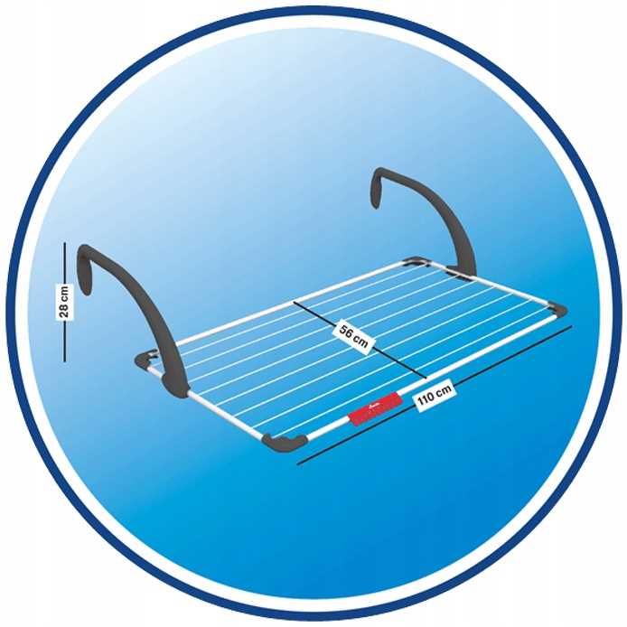 Suszarka posiada składane, regulowane ramiona umożliwiające wygodne i łatwe zawieszenie suszarki.