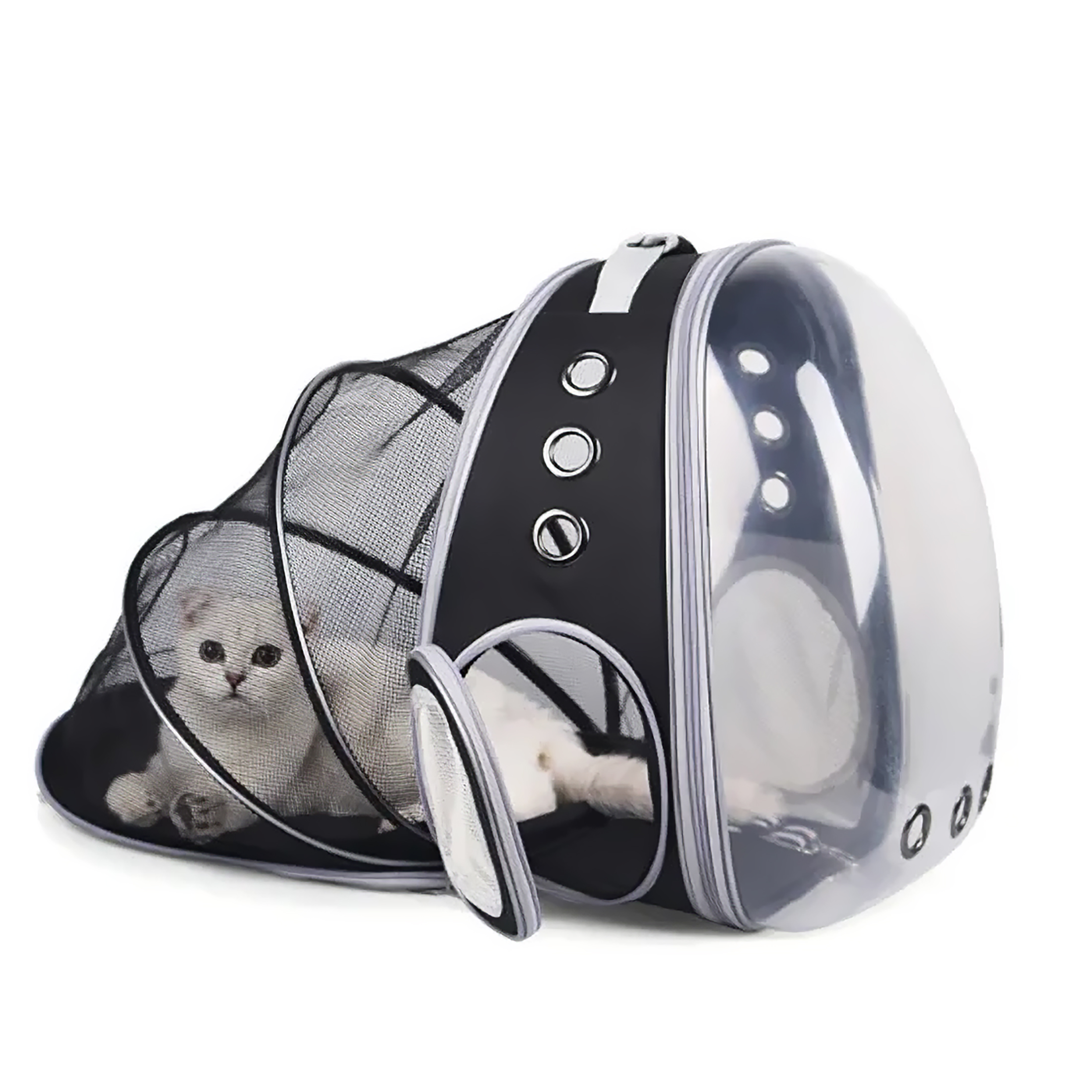 Dzięki wbudowanym siatkom, transporter można rozłożyć, maksymalizując wygodę Twojego zwierzęcia. Możesz poszerzyć komorę główną z przodu oraz całkowicie rozłożyć tył plecaka.
