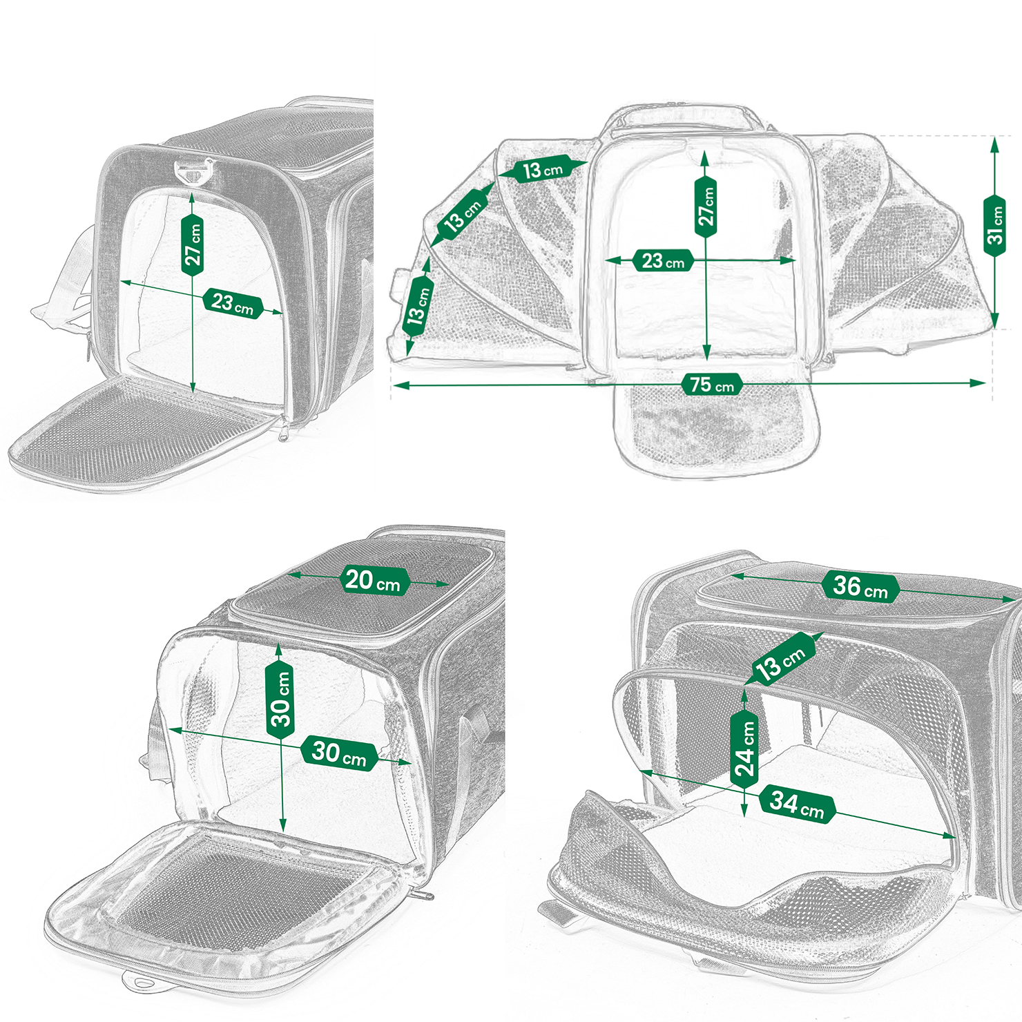 ➡️Doskonała wentylacja: Każde okno wyposażone jest w gęstą, wzmocnioną winylem siatkę zapinaną na podwójny zamek. Dzięki temu Twój pupil ma stały dostęp do świeżego powietrza i dobrą widoczność, co zwiększa jego komfort i poczucie bezpieczeństwa.