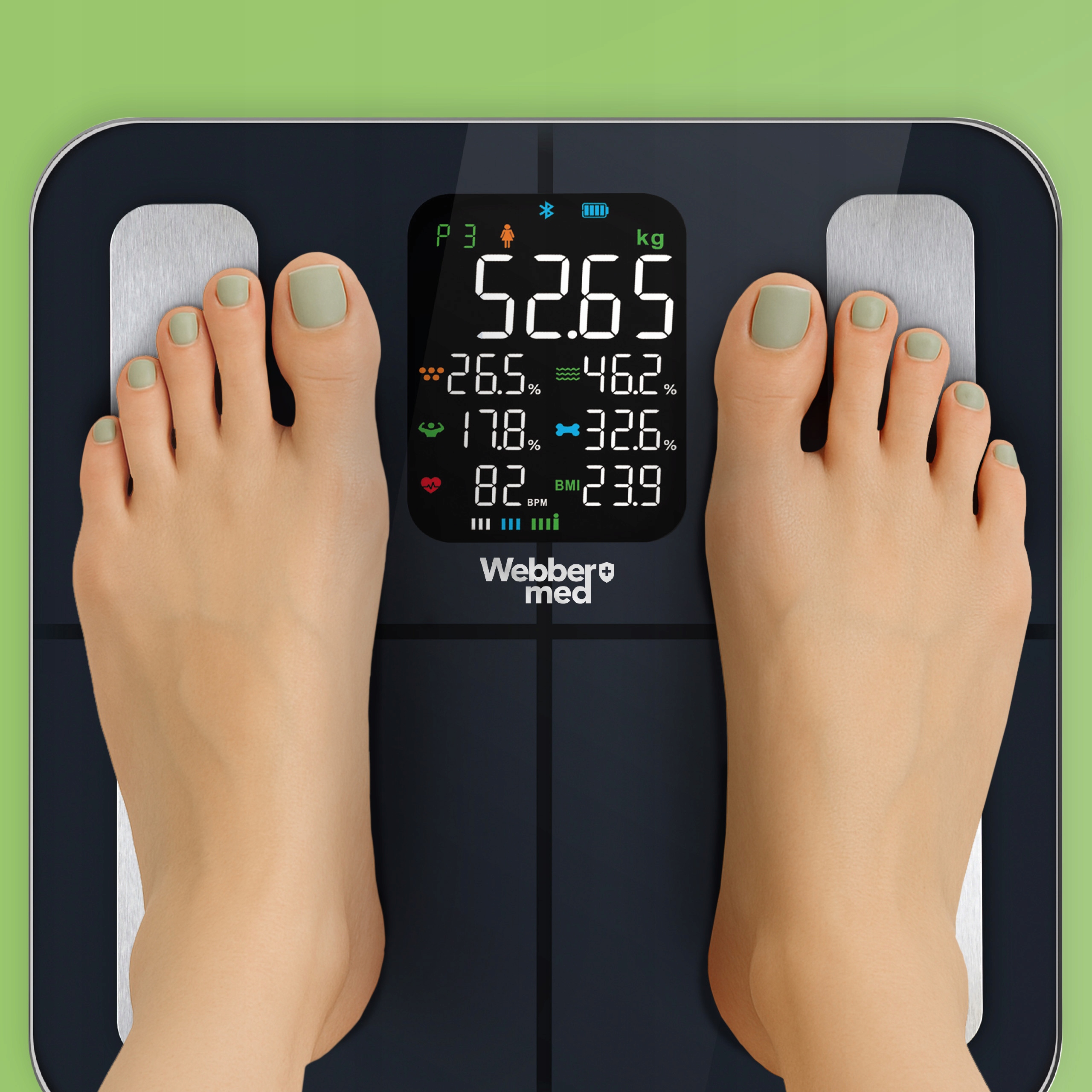 Waga Webber automatycznie synchronizuje się z wiodącymi aplikacjami zdrowotnymi, takimi jak Apple Health, Google Fit i Fitbit. Dzięki bezproblemowej integracji przez Bluetooth, masz stały dostęp do swoich wyników i postępów w jednym miejscu.