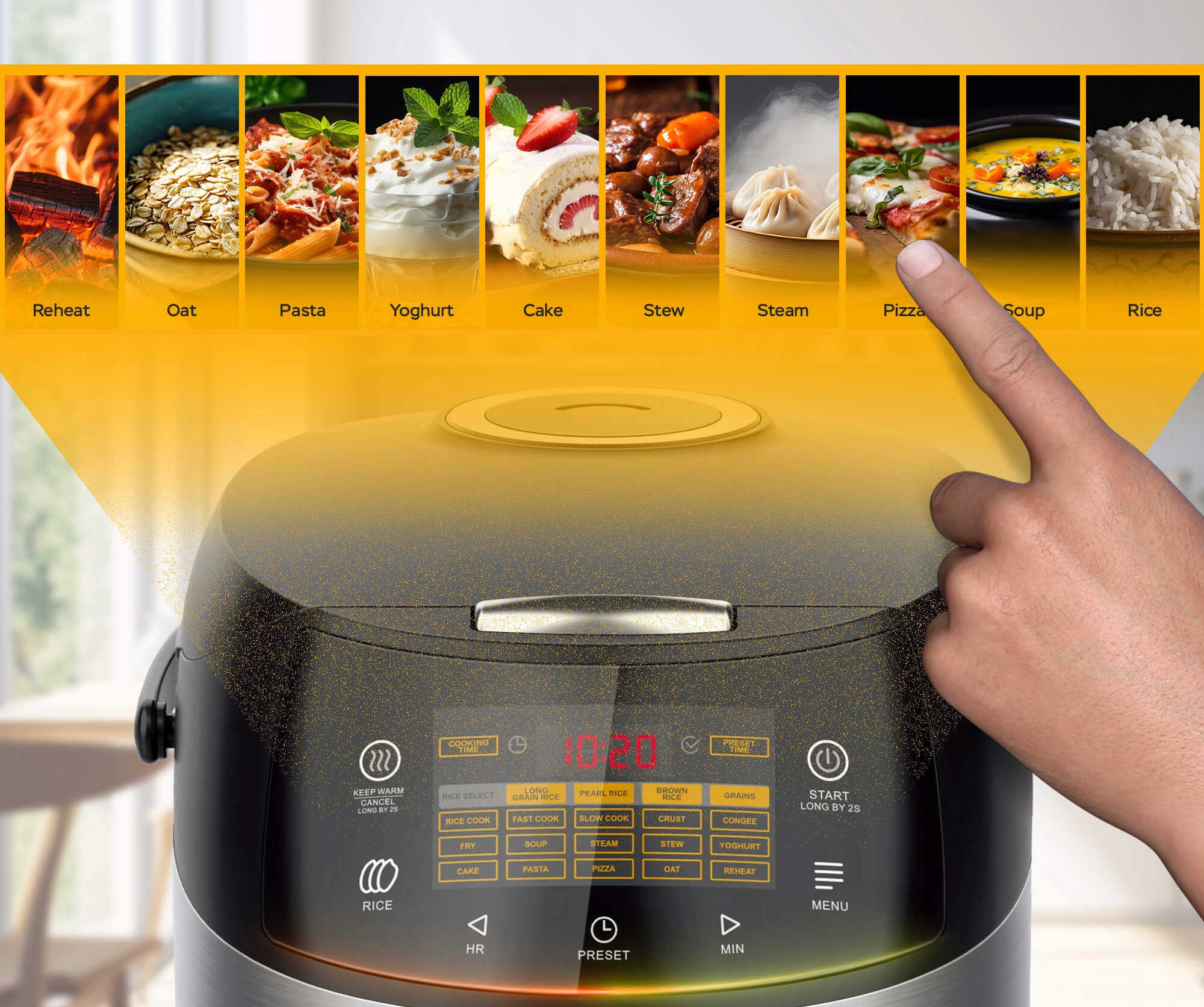 Dzięki automatycznym programom i funkcji gotowania na parze, multicooker zapewnia przygotowanie zdrowych, pełnych wartości odżywczych dań, bez użycia nadmiaru tłuszczu.