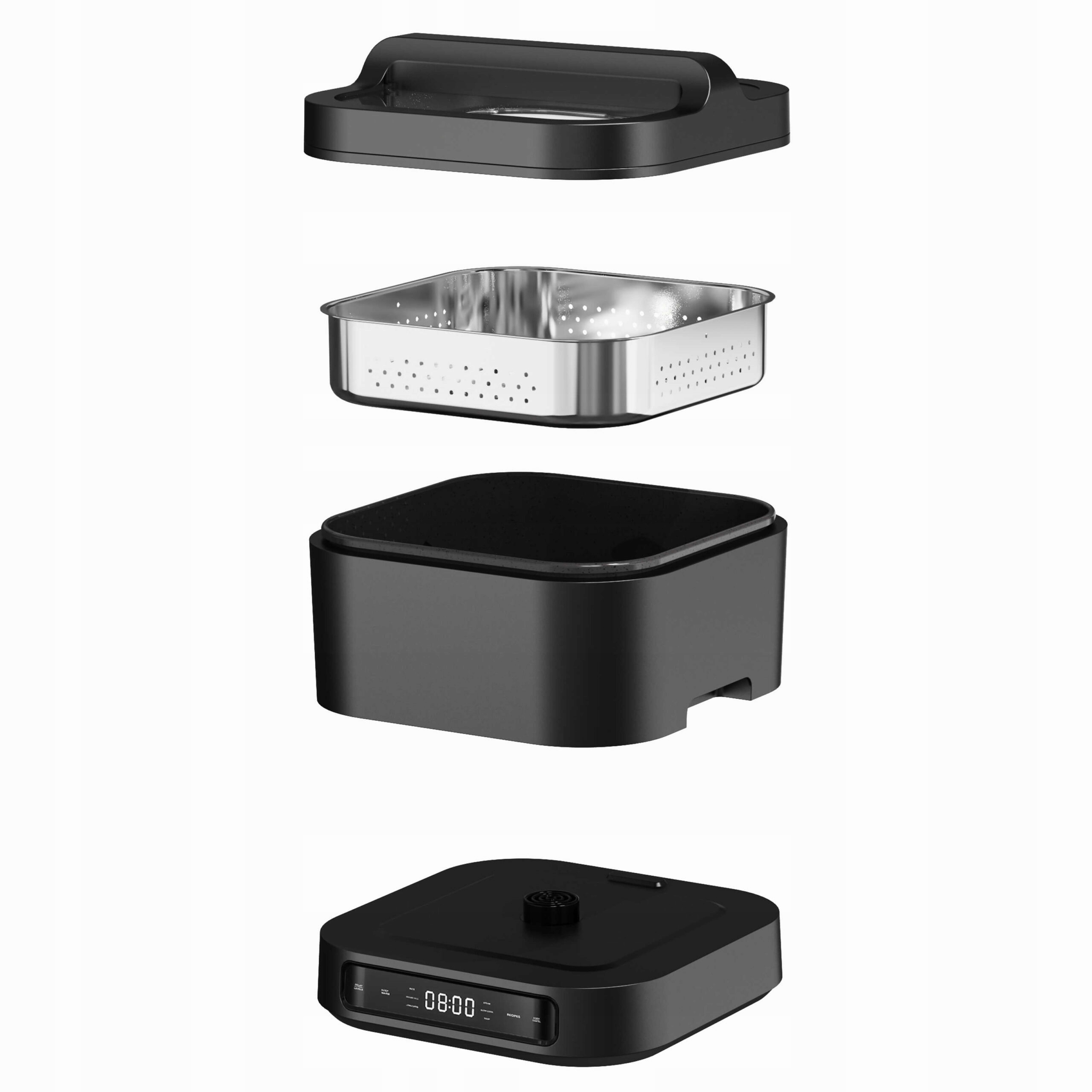 Dodatek w postaci tacki do gotowania na parze wykonanej ze stali nierdzewnej dodatkowo rozszerza możliwości tego wielofunkcyjnego urządzenia. Teraz możesz łatwo przygotowywać zdrowe dania, zachowując pełnię smaku i wartości odżywczych składników.