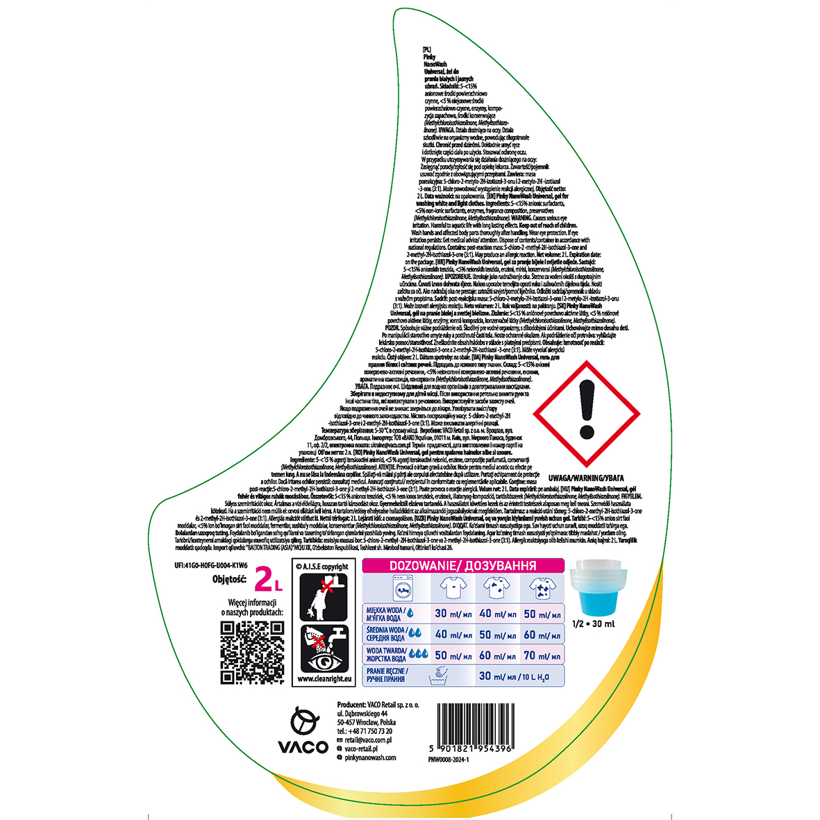 Pinky NanoWash Universal – Żel do prania tkanin białych i jasnych (66 prań) 2L