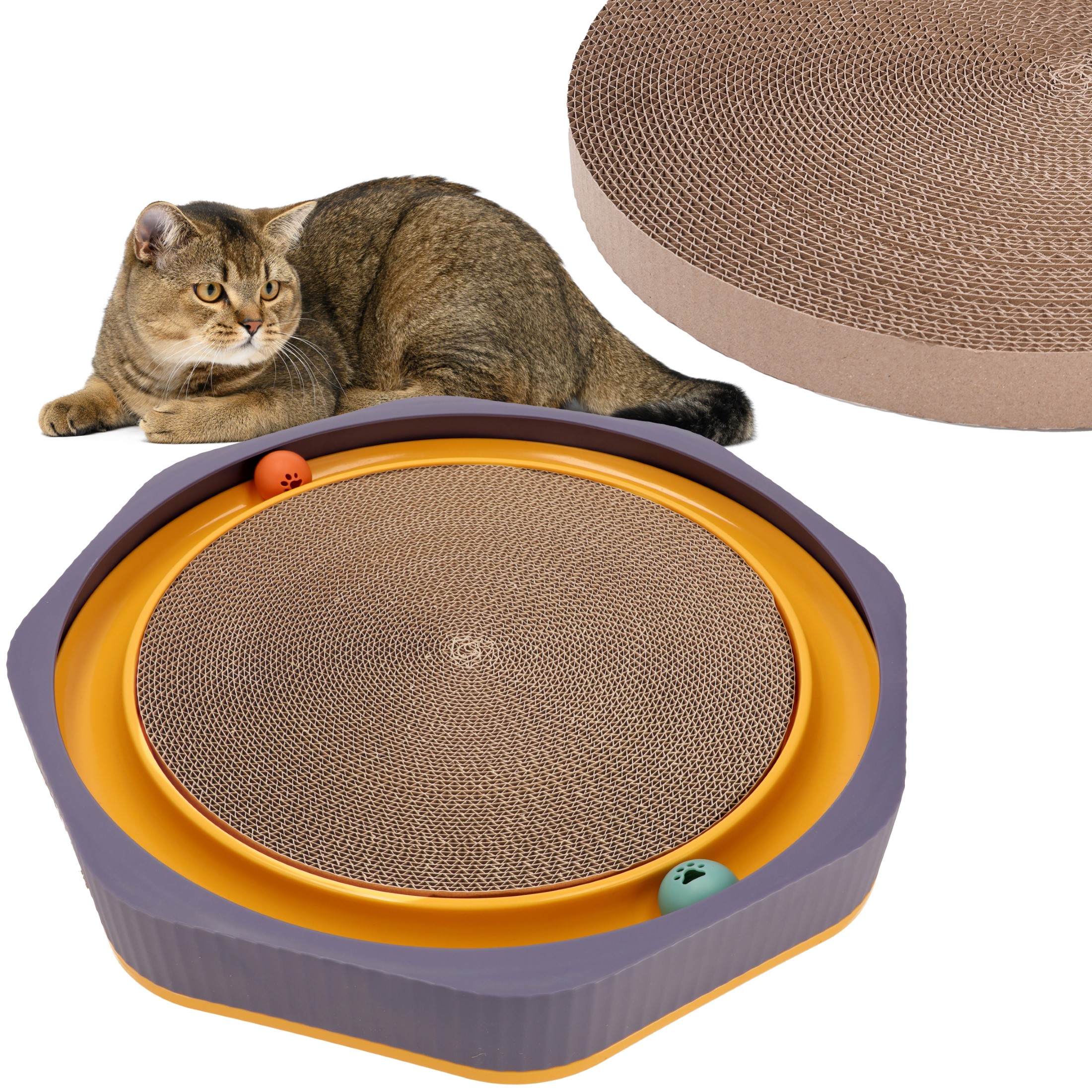 - Dodatkowy wymienny wkład – w zestawie znajduje się dodatkowy wkład, co pozwala na dłuższe użytkowanie produktu, zapewniając kotu stały dostęp do miejsca do drapania.