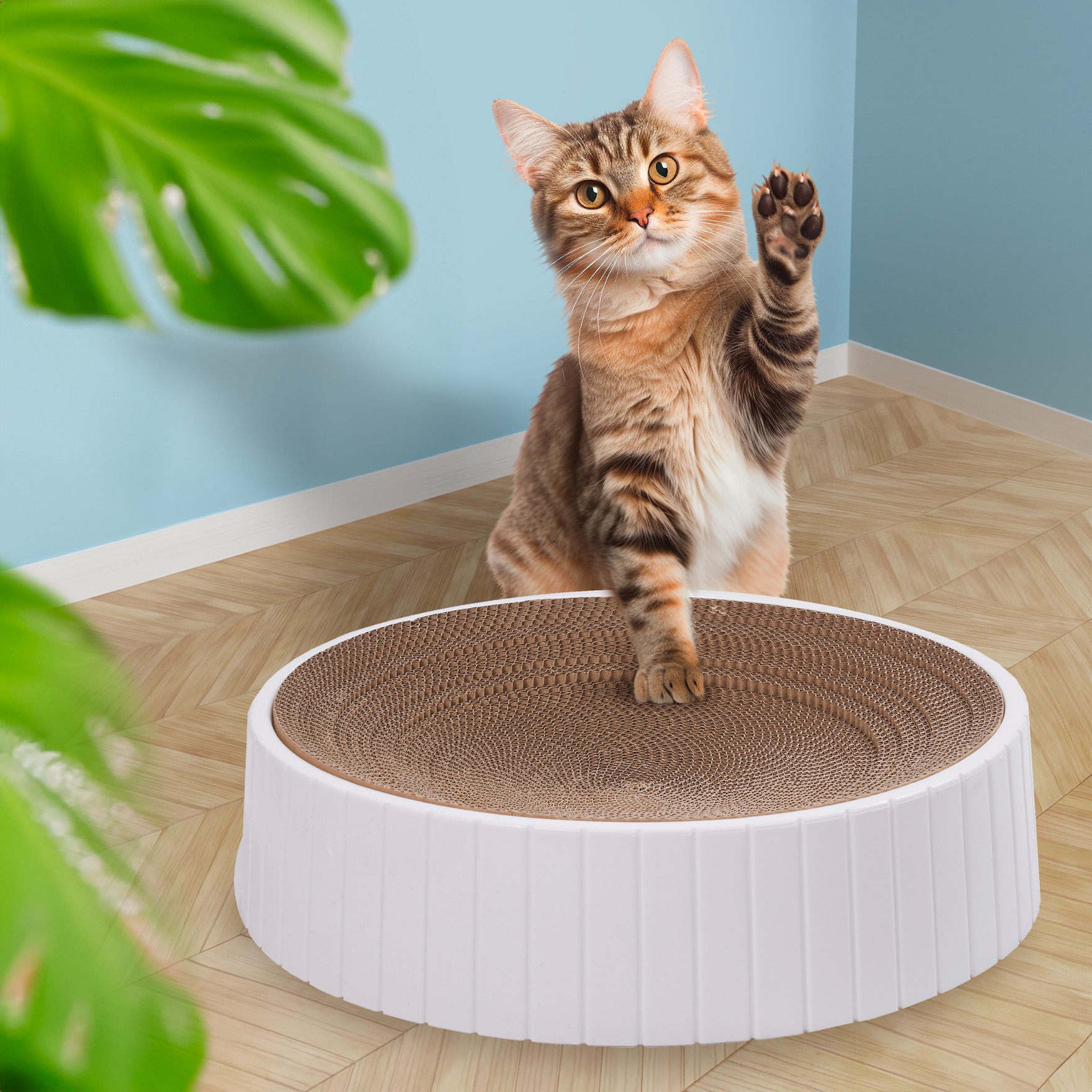 - Ekologiczny materiał – drapak wykonany z wysokiej jakości tektury, przyjaznej dla środowiska i w pełni biodegradowalnej.