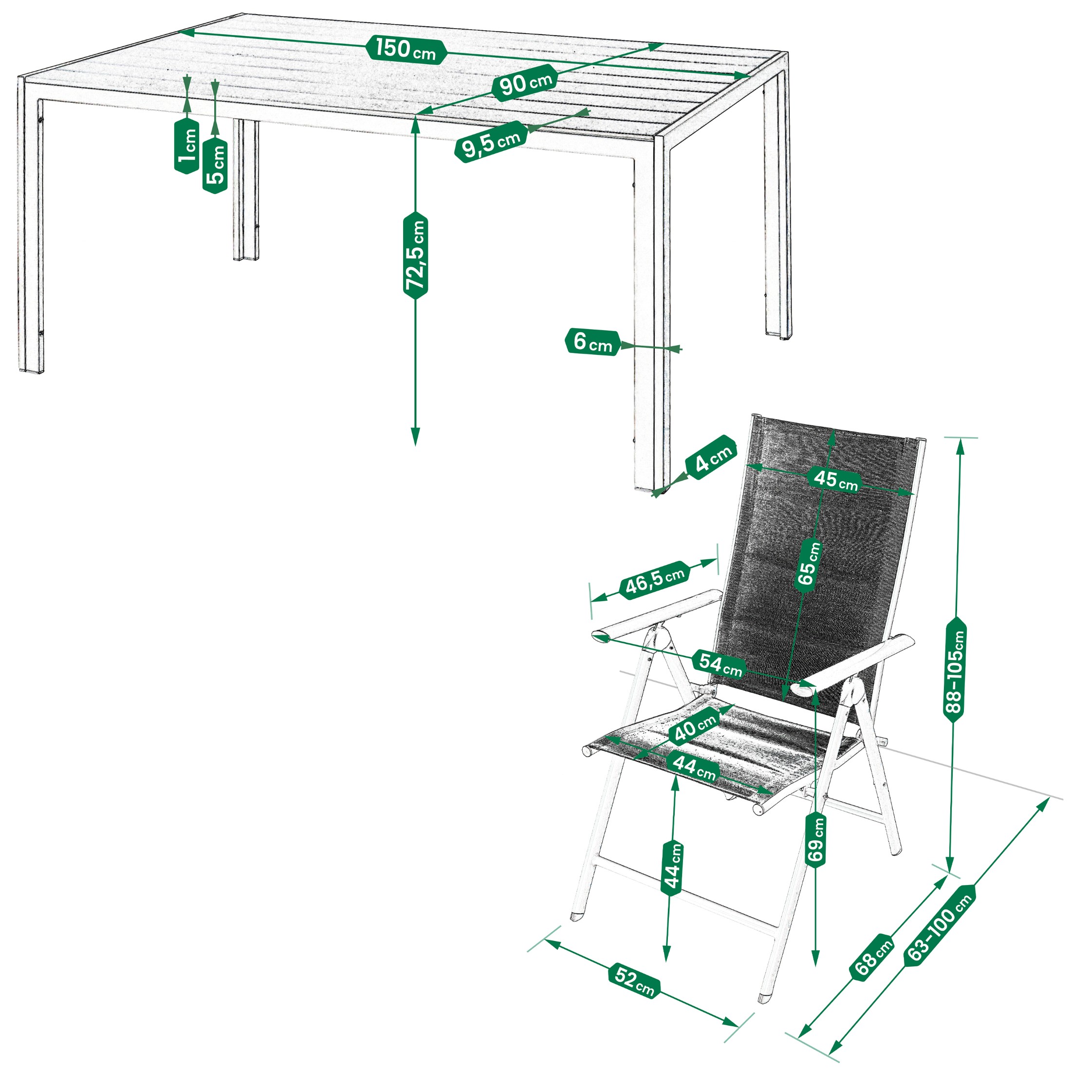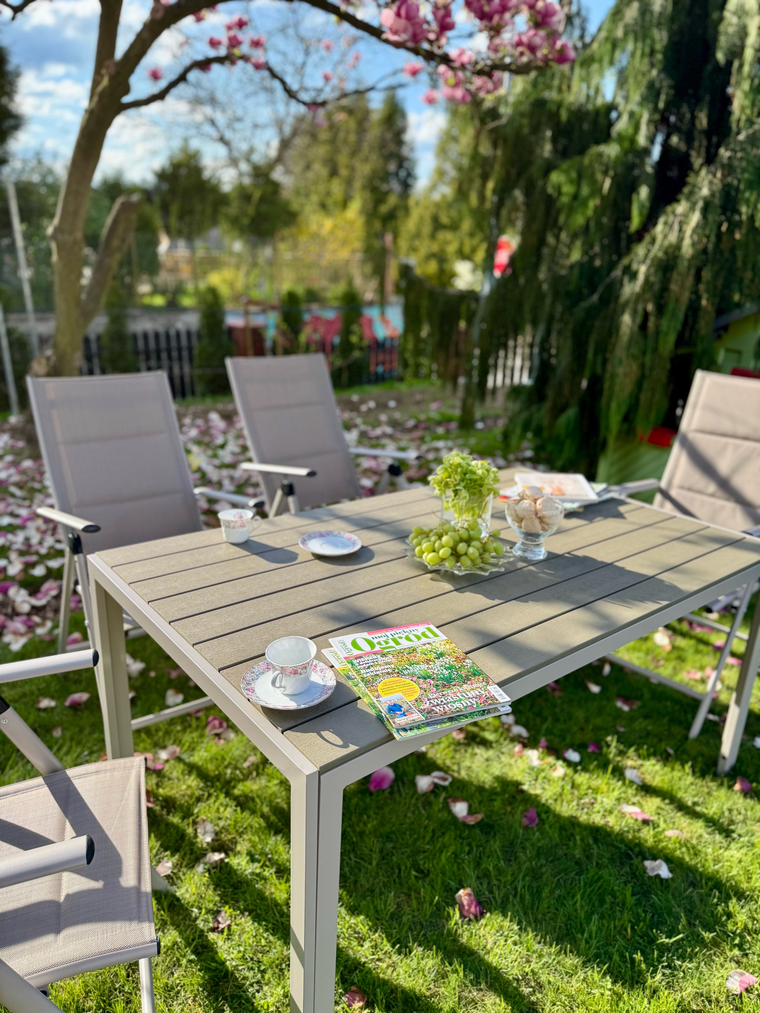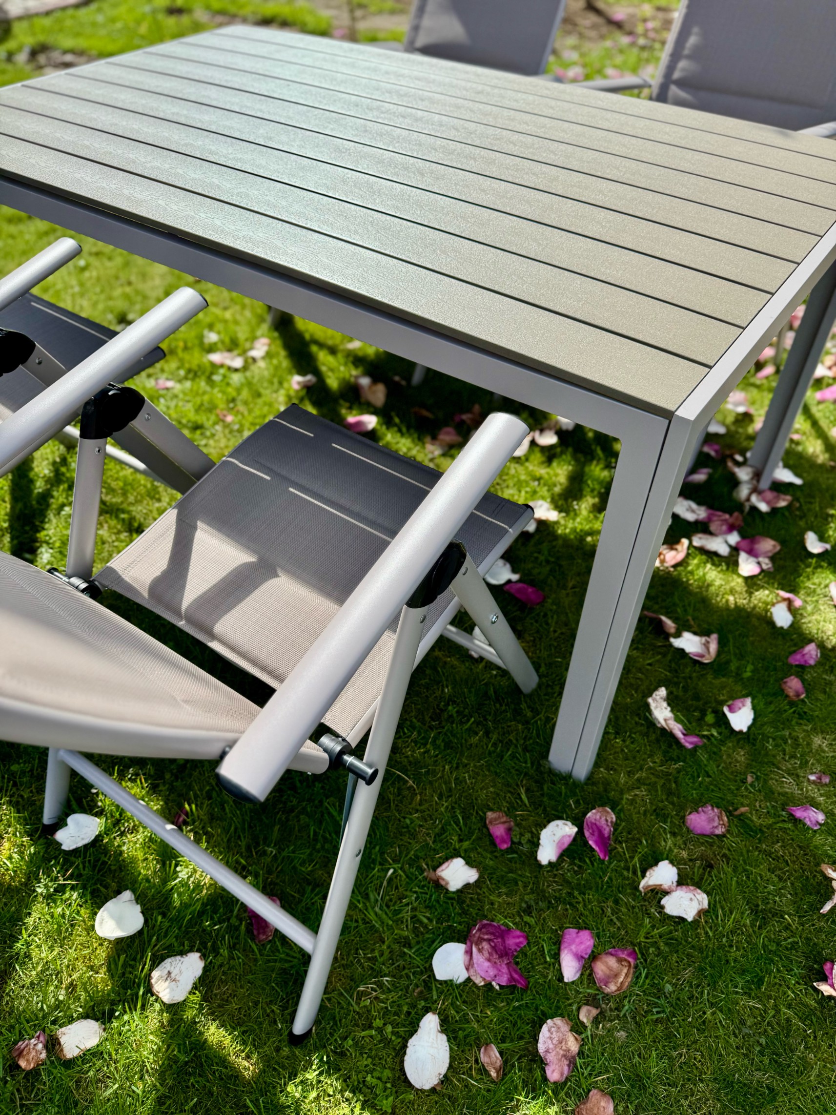 - Stylowy design: Zestaw charakteryzuje się nowoczesnym, eleganckim wyglądem, który doskonale pasuje do każdego ogrodu, tarasu czy balkonu.