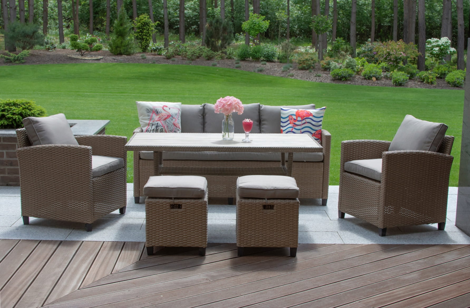 - to nowoczesne i łatwe w utrzymaniu meble ogrodowe z wytrzymałego syntetycznego technorattanu - zapewnia stabilność i przyczynia się do znacznego zwiększenia komfortu siedzenia.