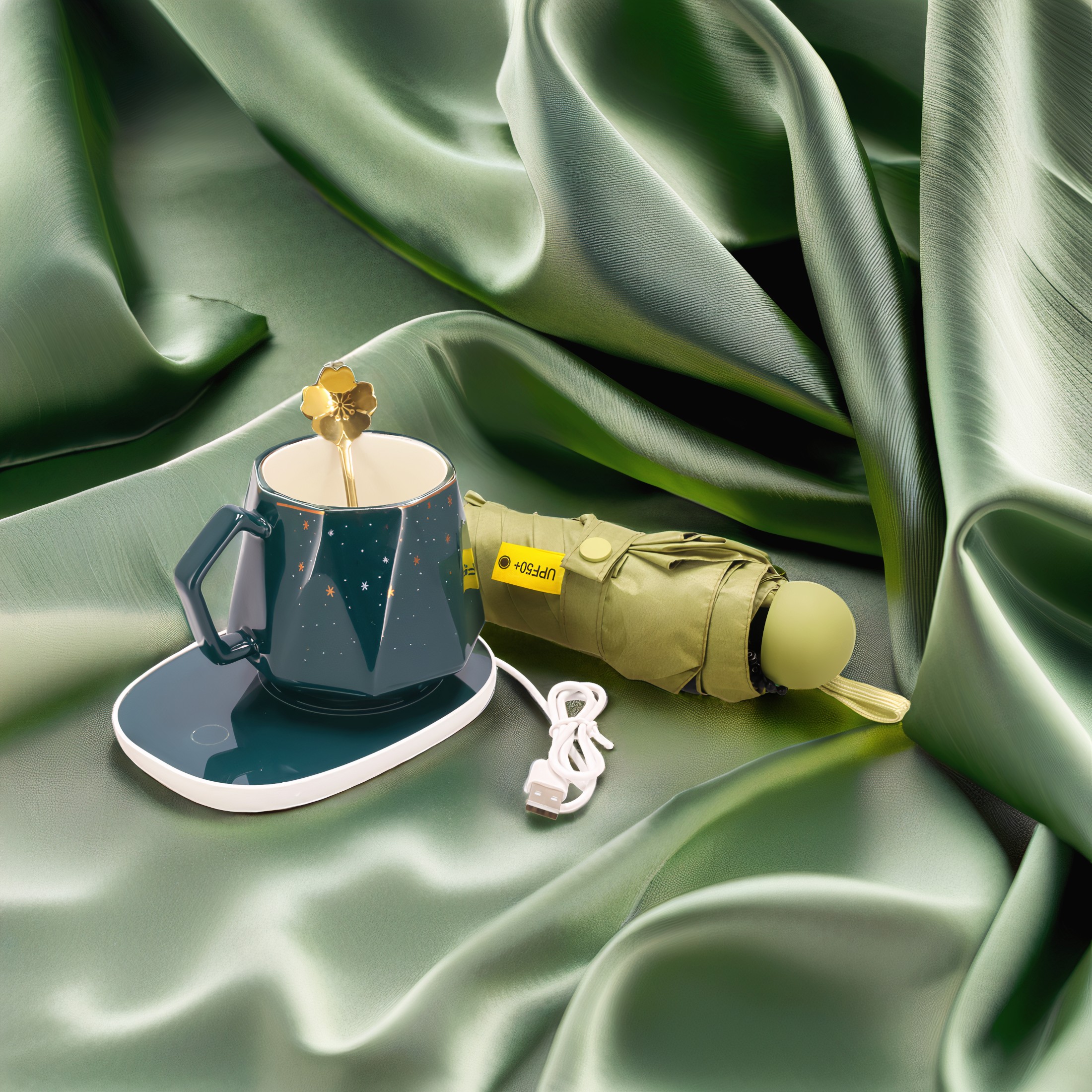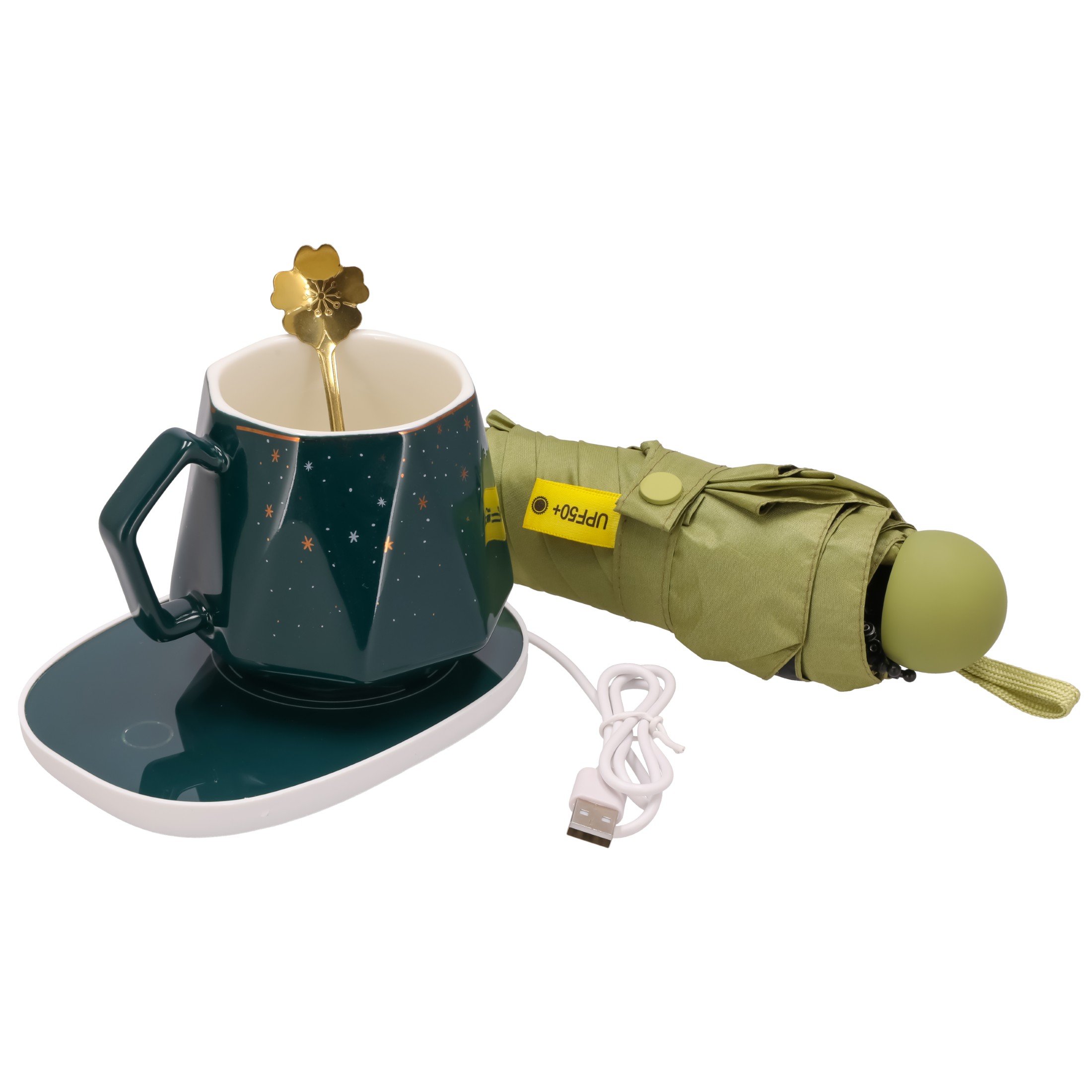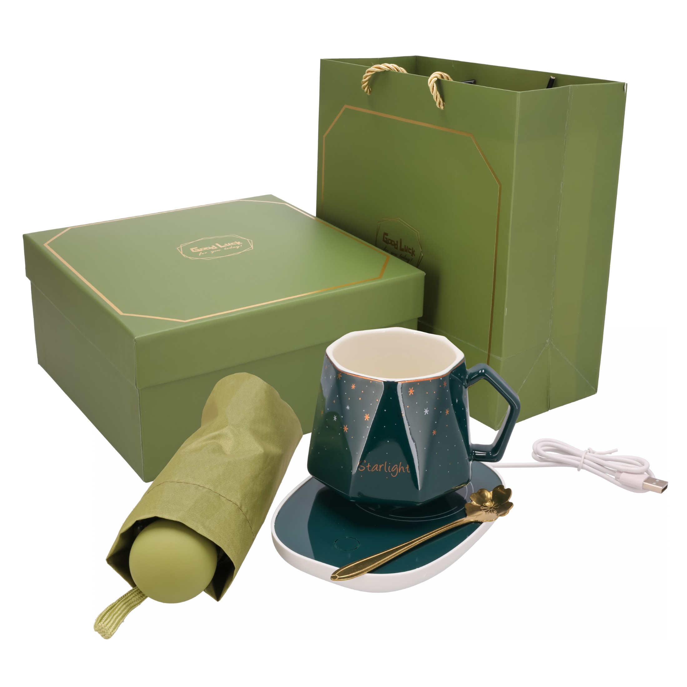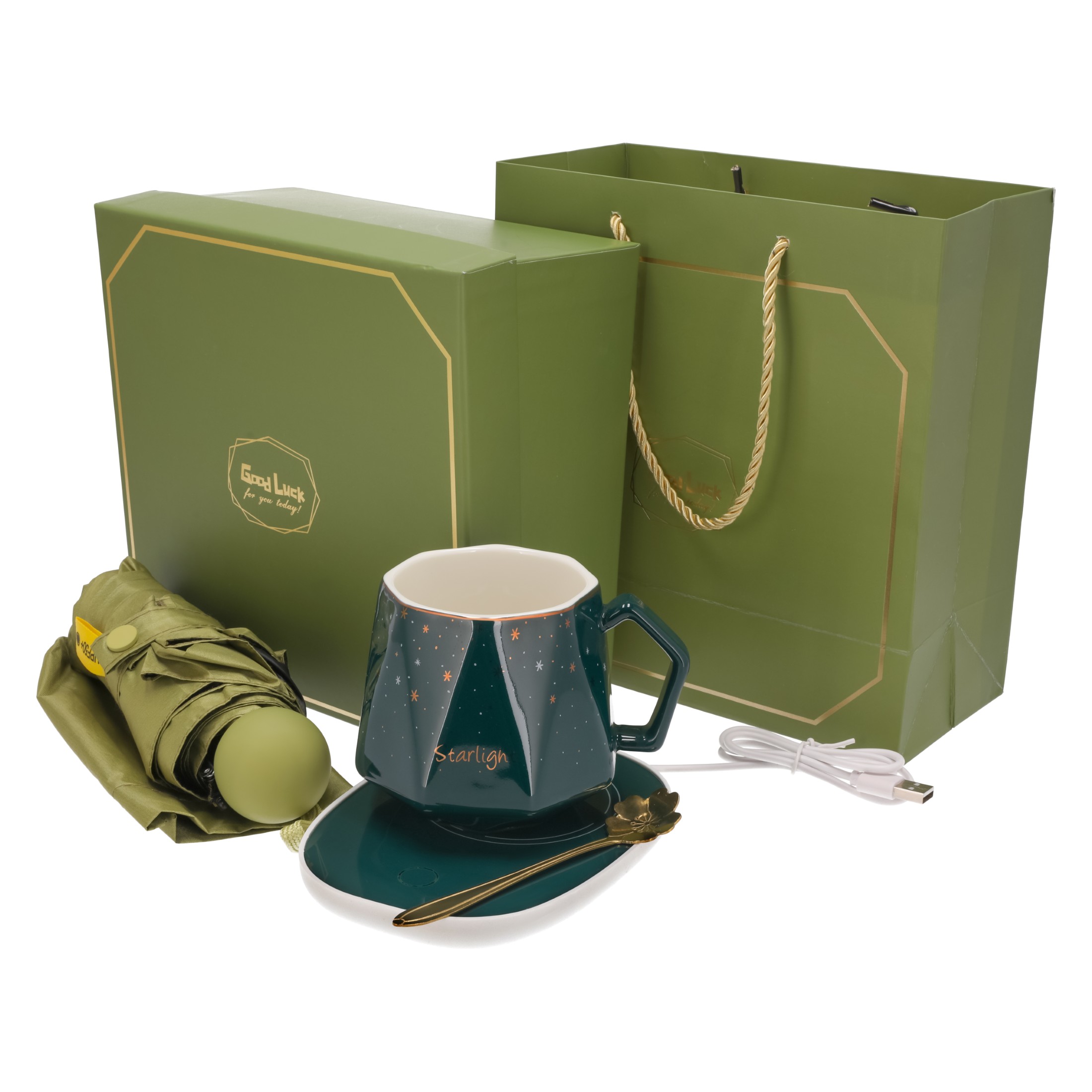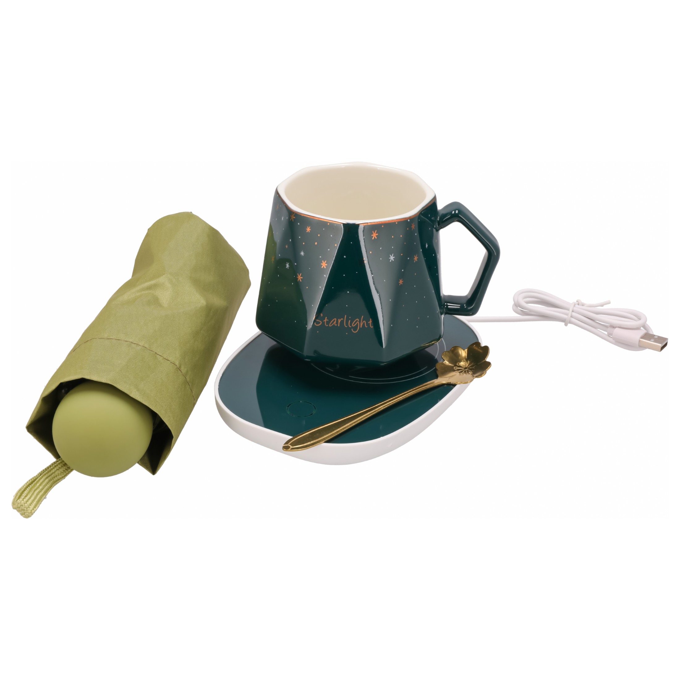 Zestaw prezentowy KUBEK parasola łyżka PODGRZEWACZ elektryczny upominkowy