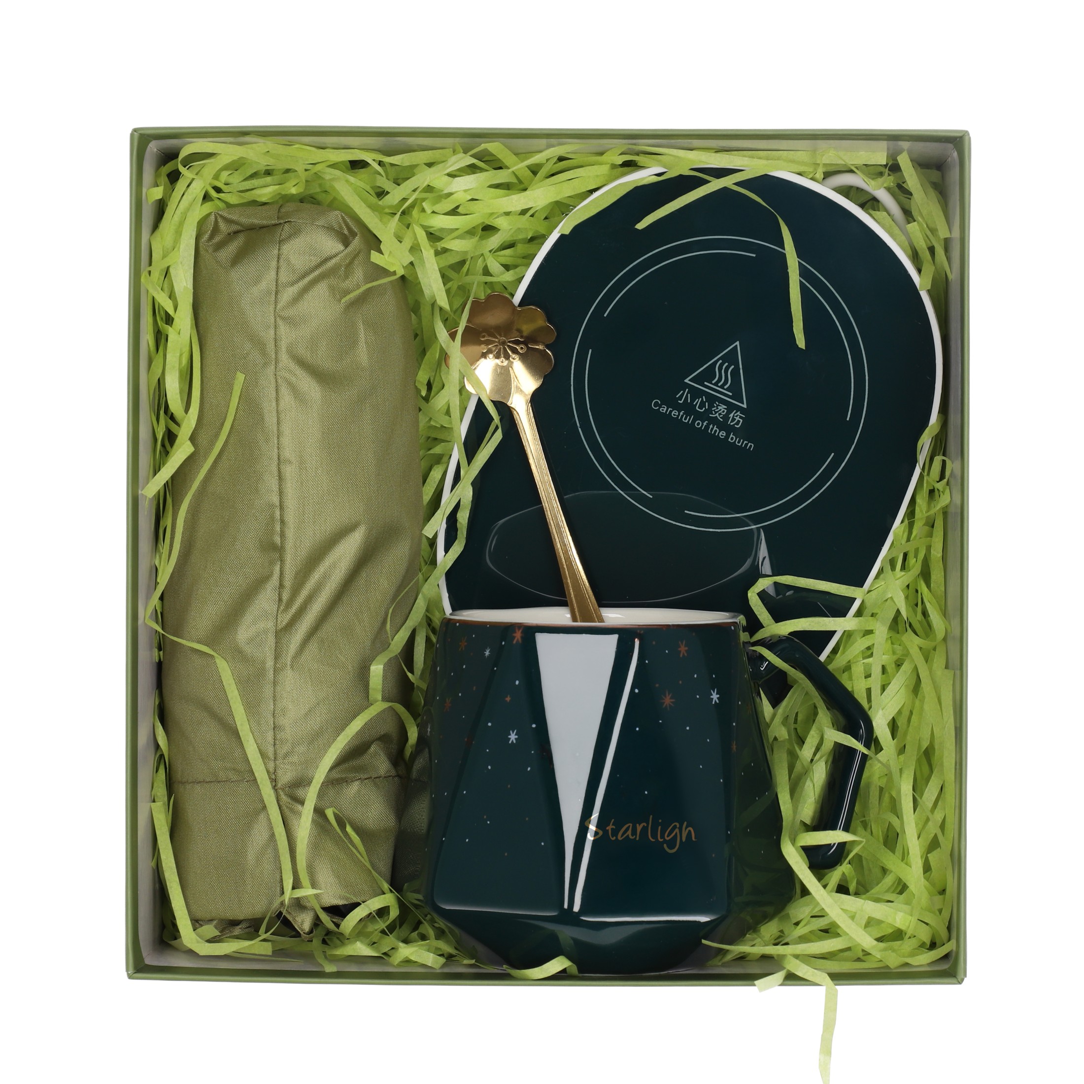 ☘️ Zestaw zawiera: ceramiczny kubek, łyżeczkę, parasolkę, podgrzewacz do kubka.