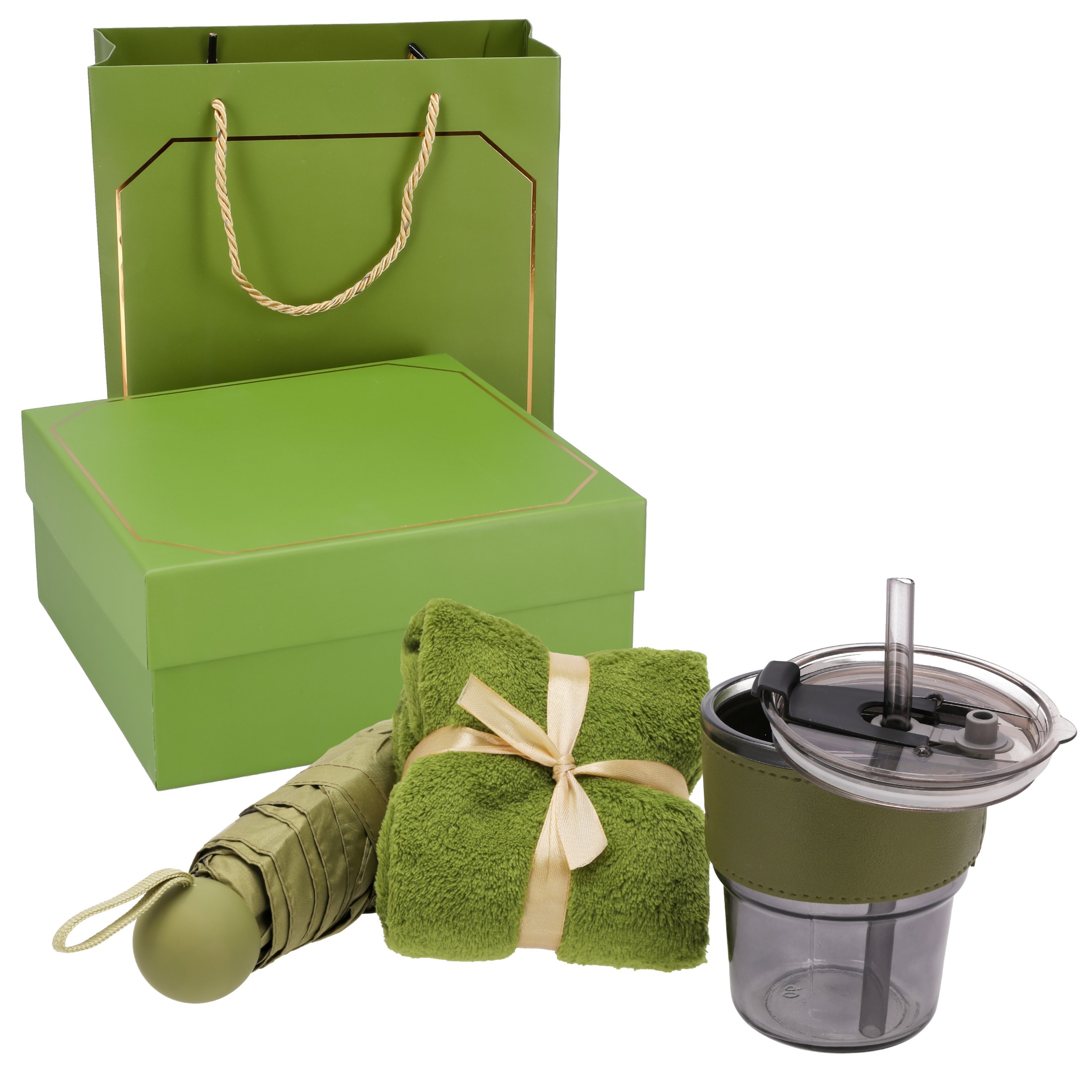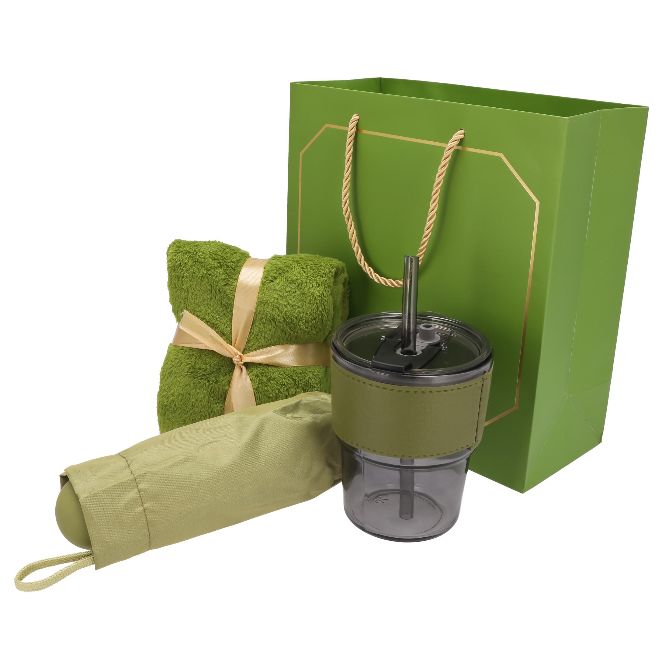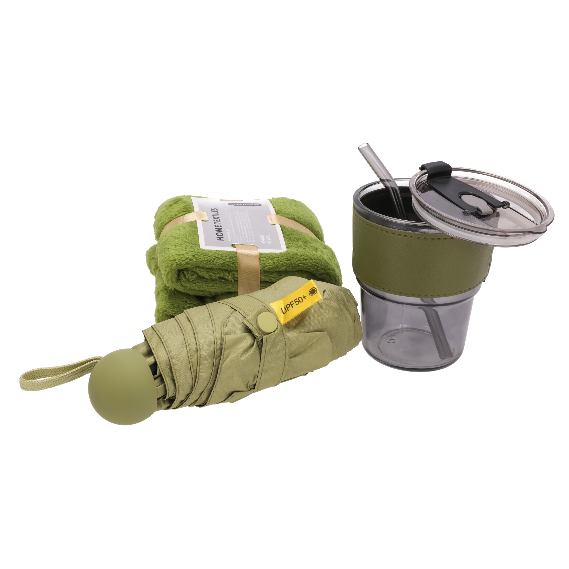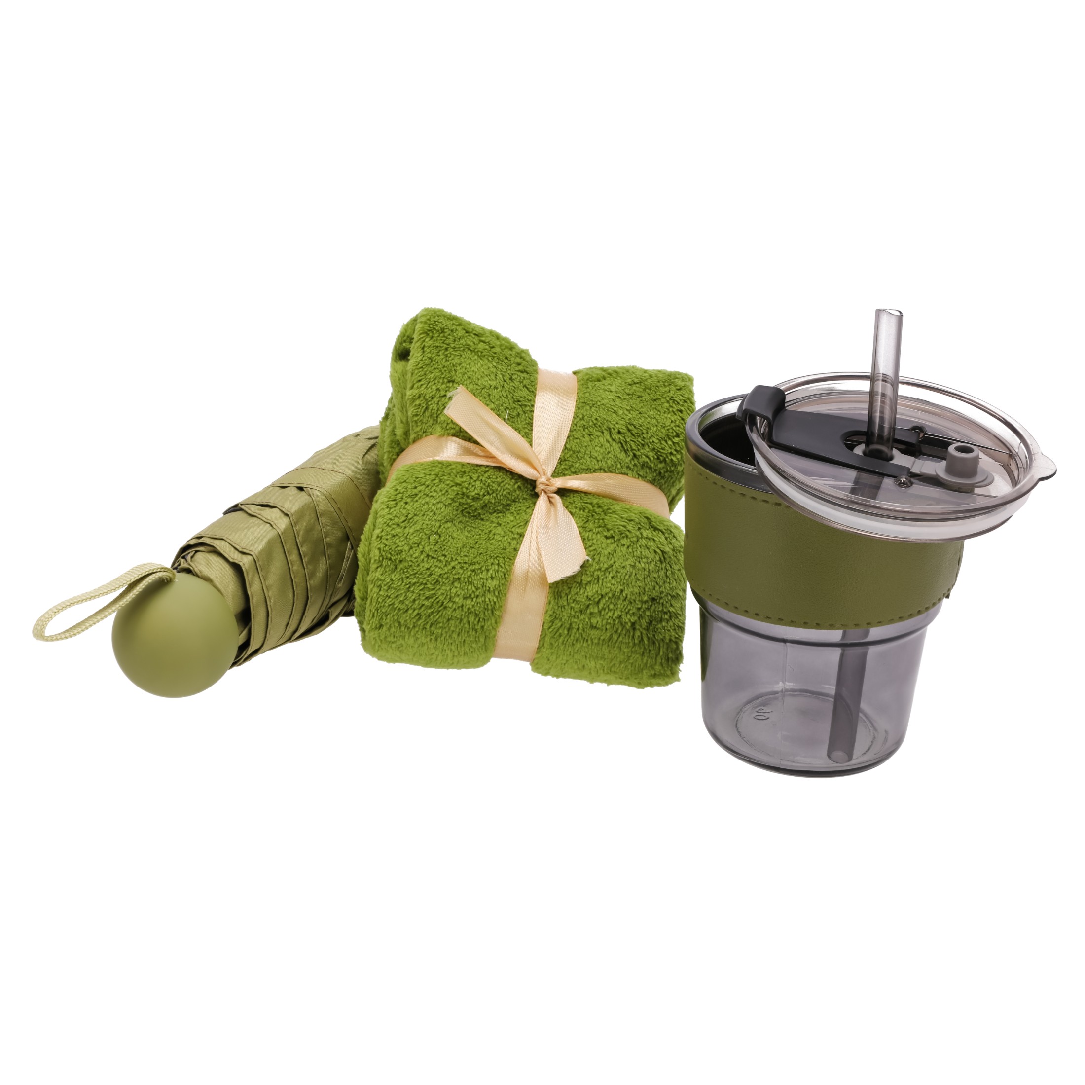 Zestaw prezentowy KUBEK turystyczny SZKLANY parasolka ręcznik UPOMINKOWY